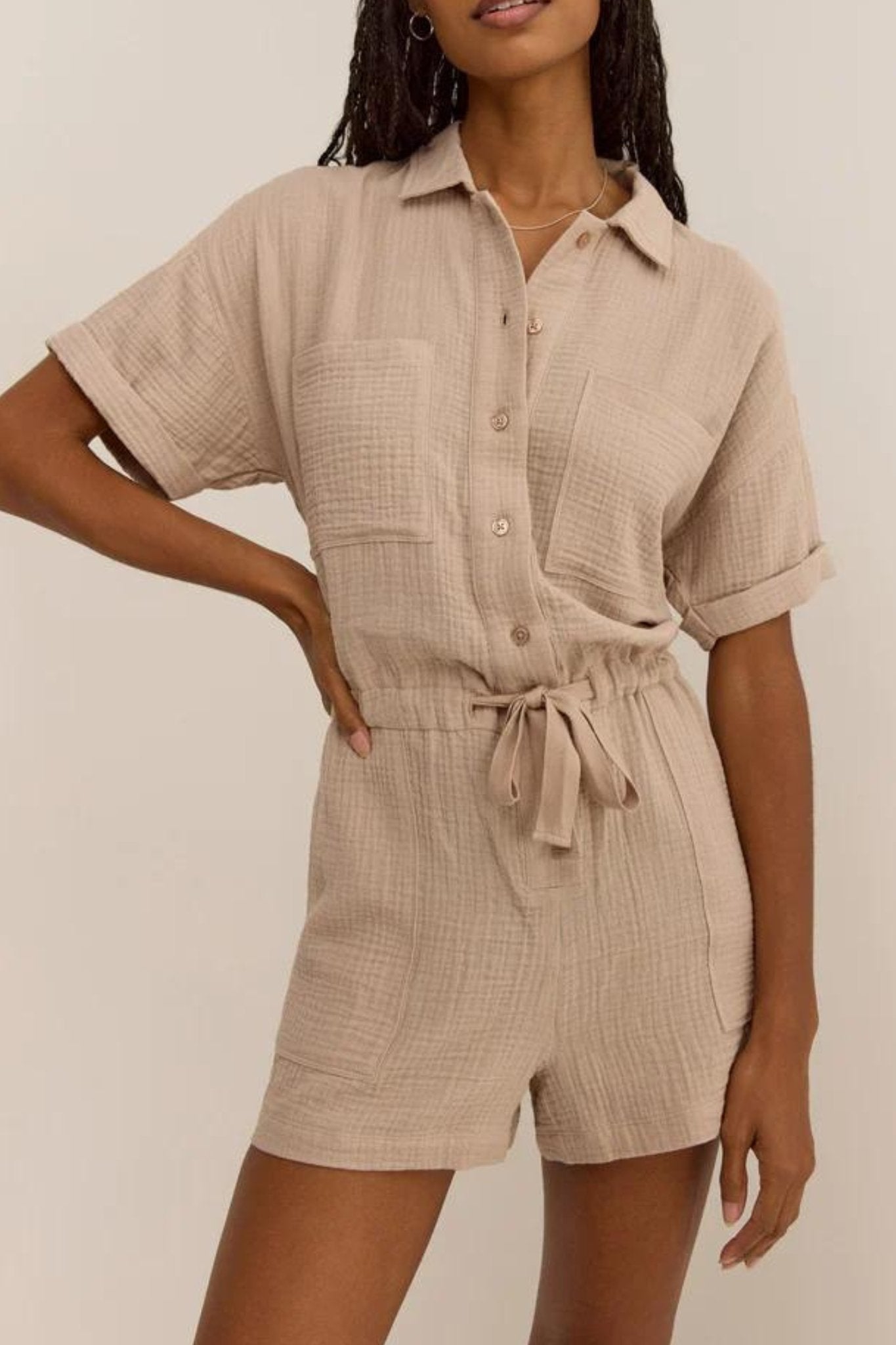 Free People Movement: Hot Shot Tee romper in Mocha Latte