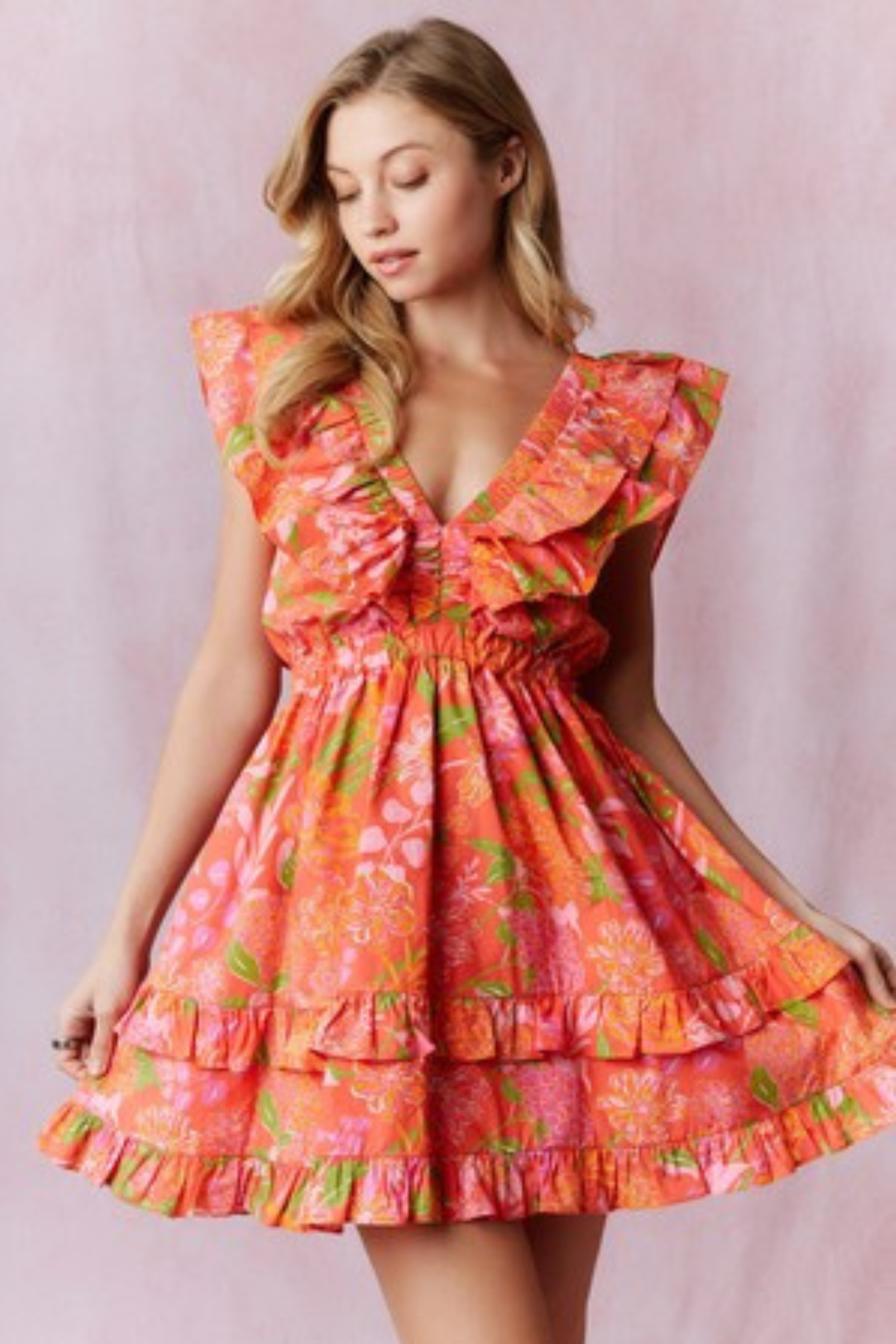 TCEC: One Shoulder Asymmetric Neck Tie Dress in Orange