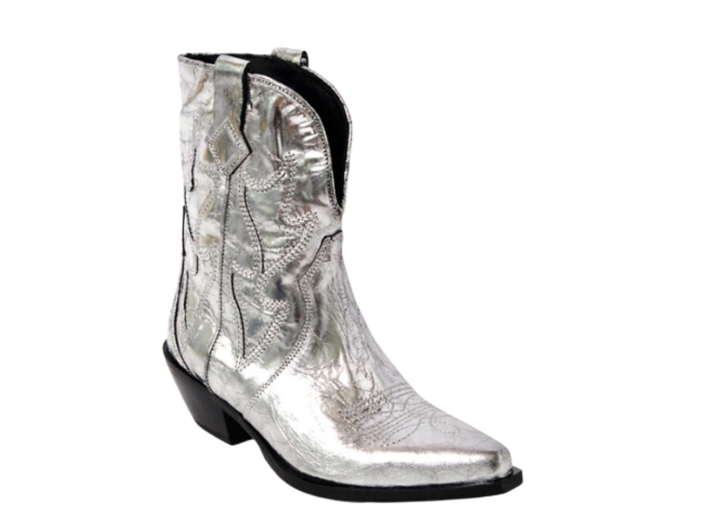 Free People: Way Out West Cowboy Boot in Pale Pewter Metallic
