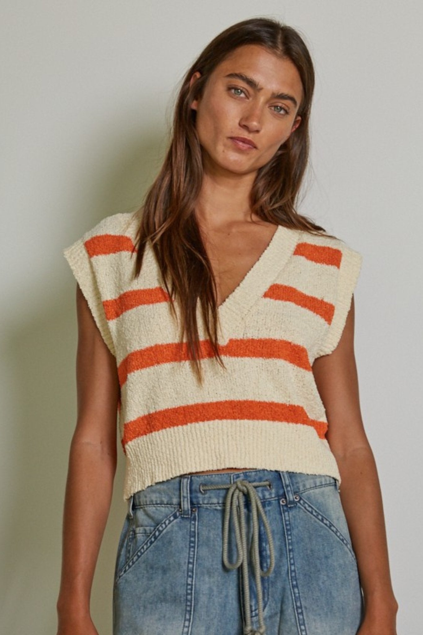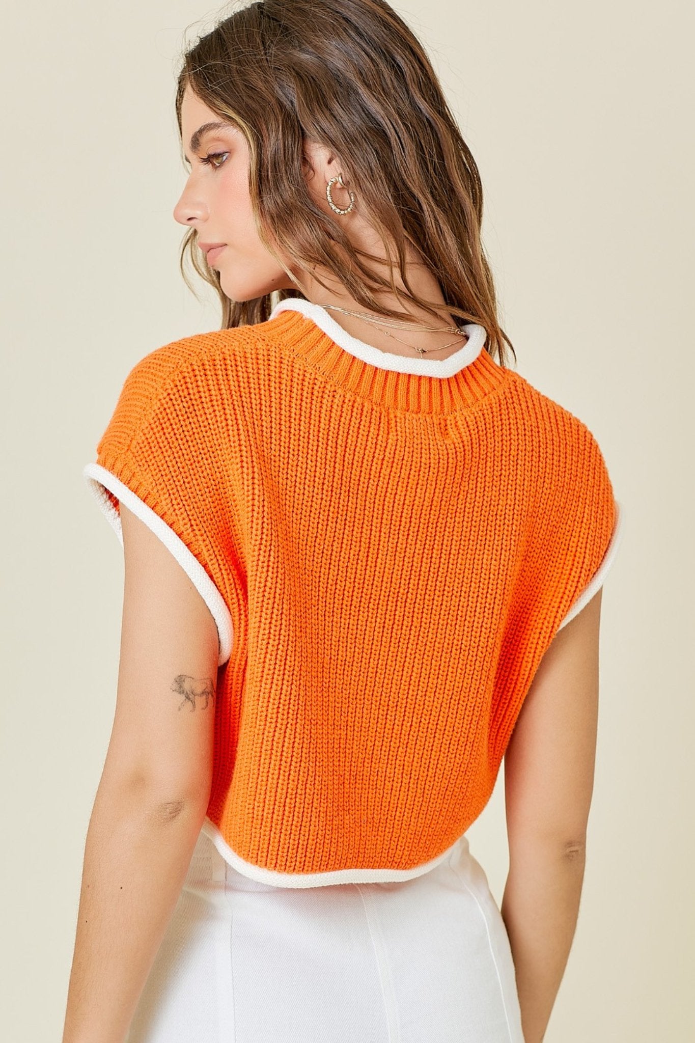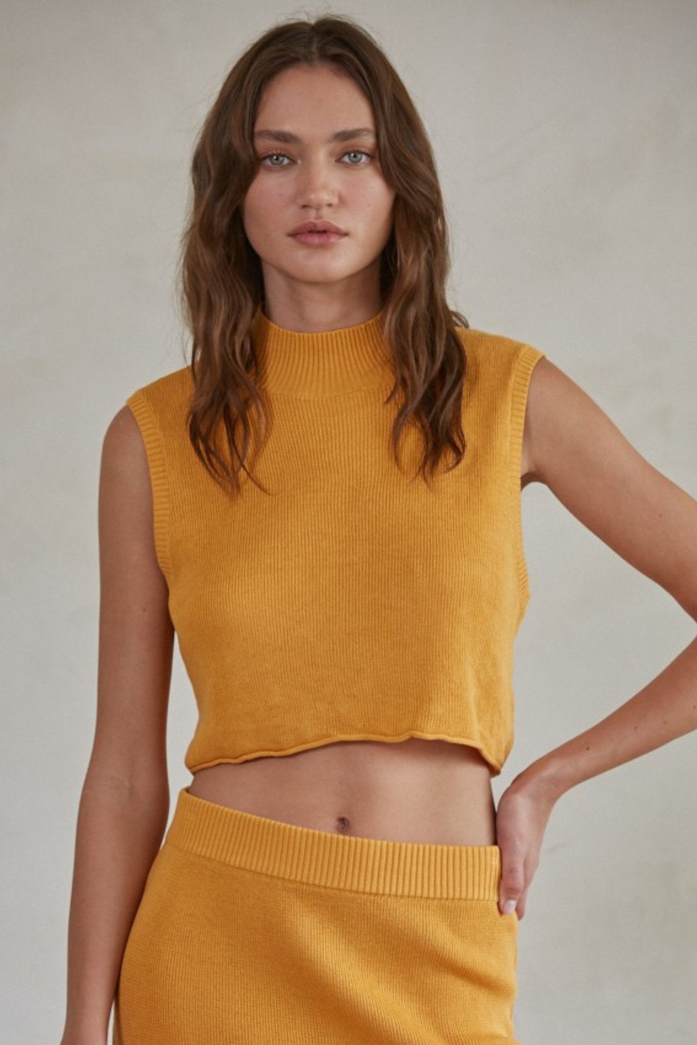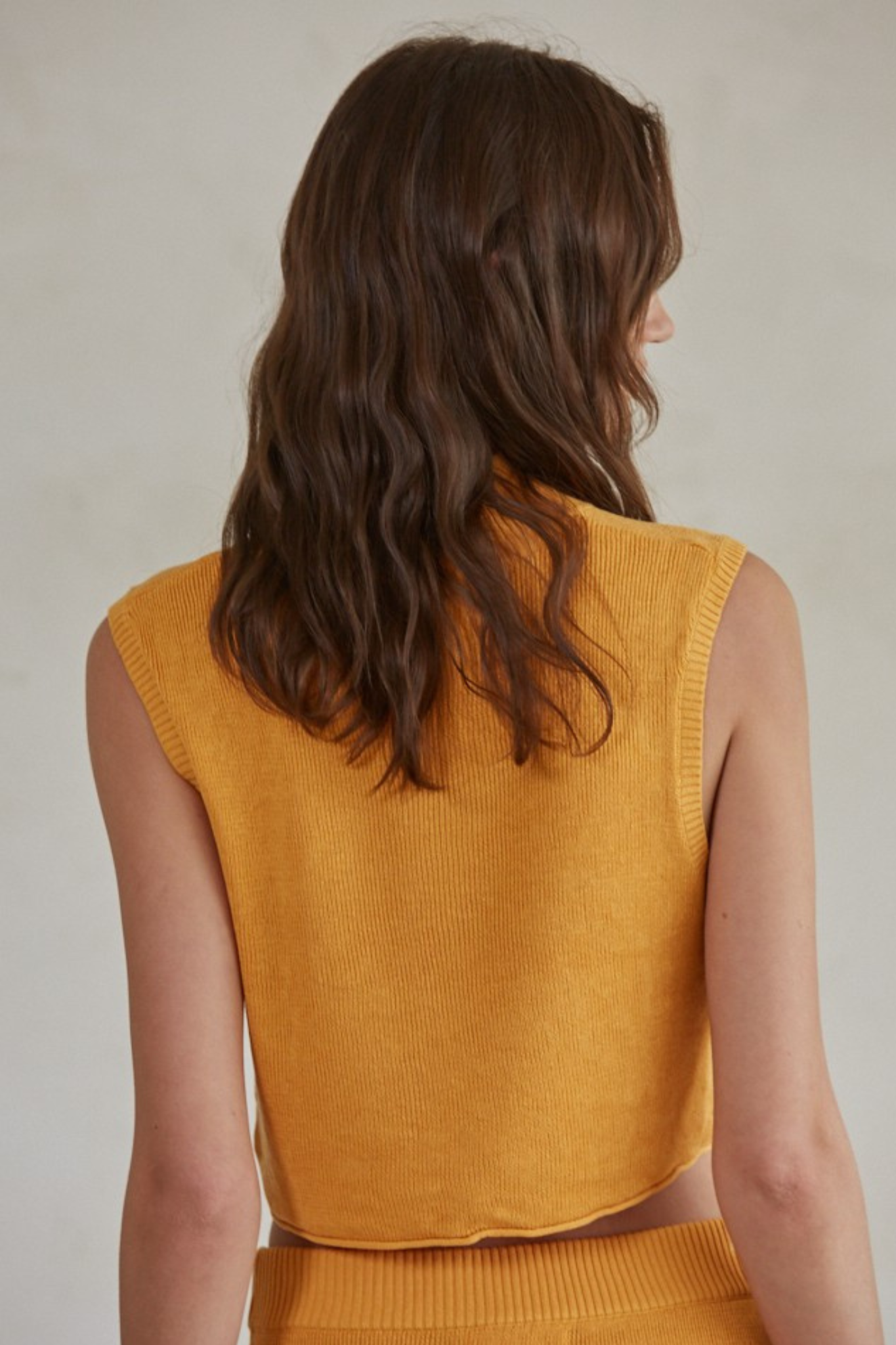 Day+Moon: Square Neck Fitted Knit Tank Top in Orange