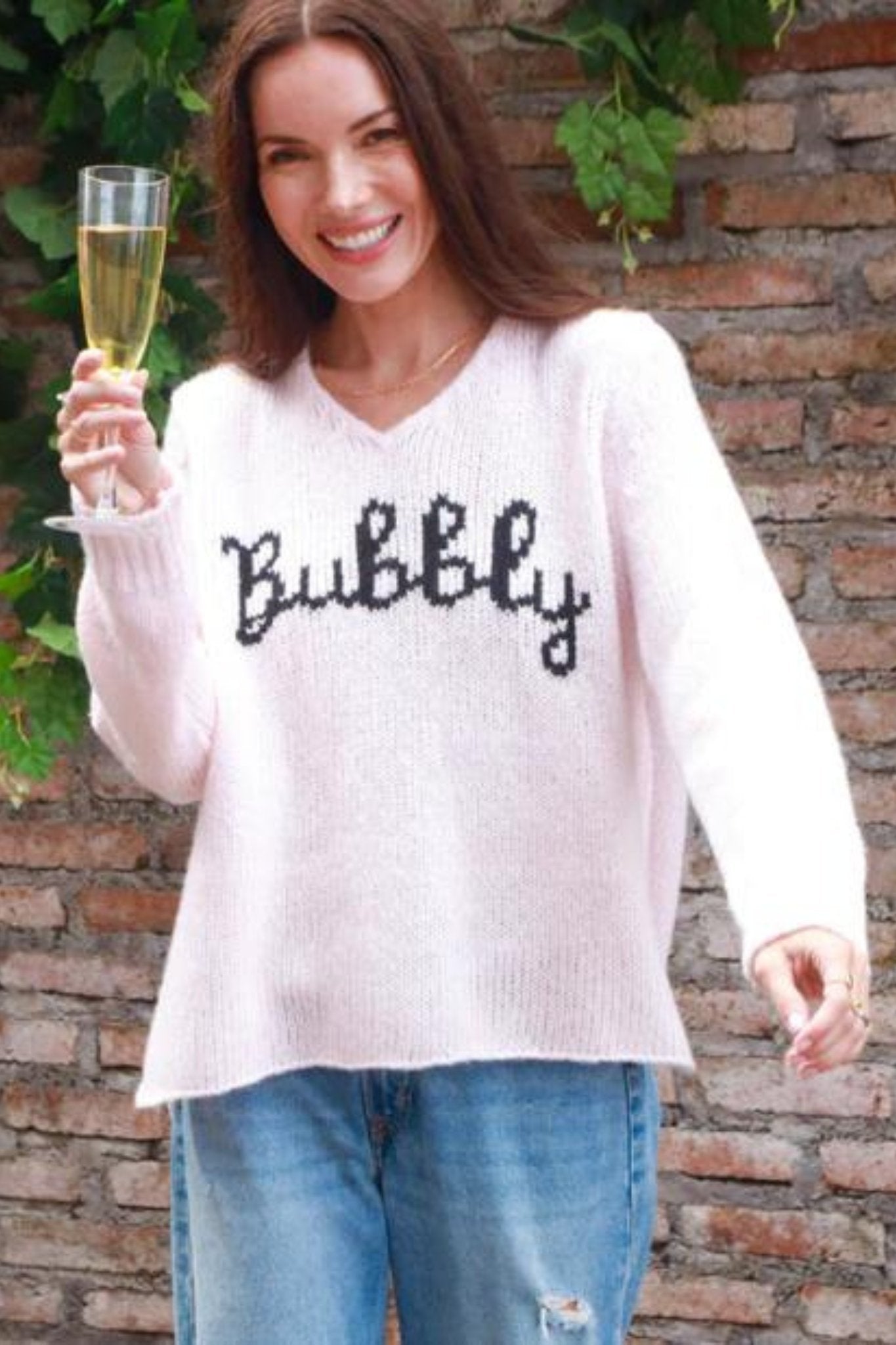 Wooden Ships: Pop Fizz Clink Sweater in Arctic Pink & Pink Sapphire - J. Cole ShoesWOODEN SHIPSWooden Ships: Pop Fizz Clink Sweater in Arctic Pink & Pink Sapphire