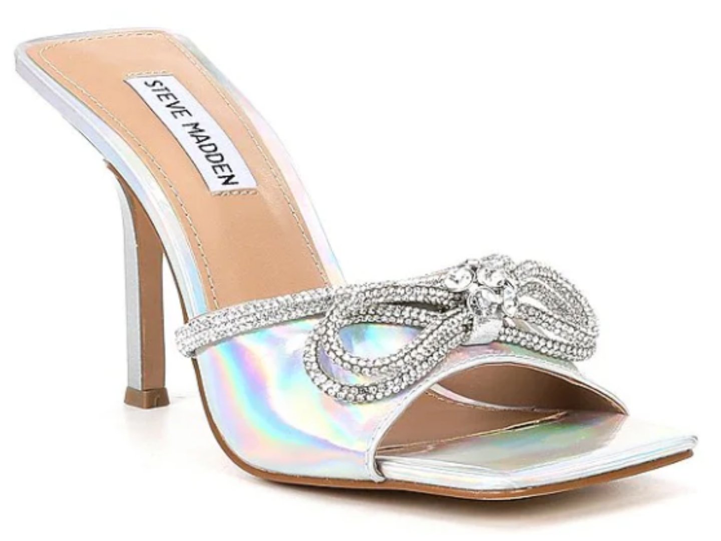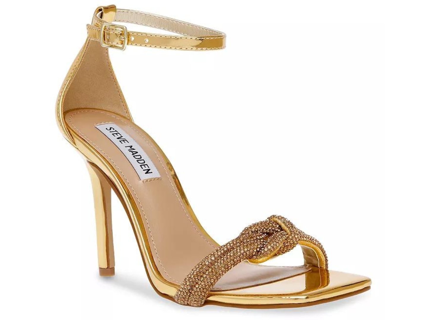 From Steve Madden, the Aries Suede Mismatched Flower Dress Sandals feature: