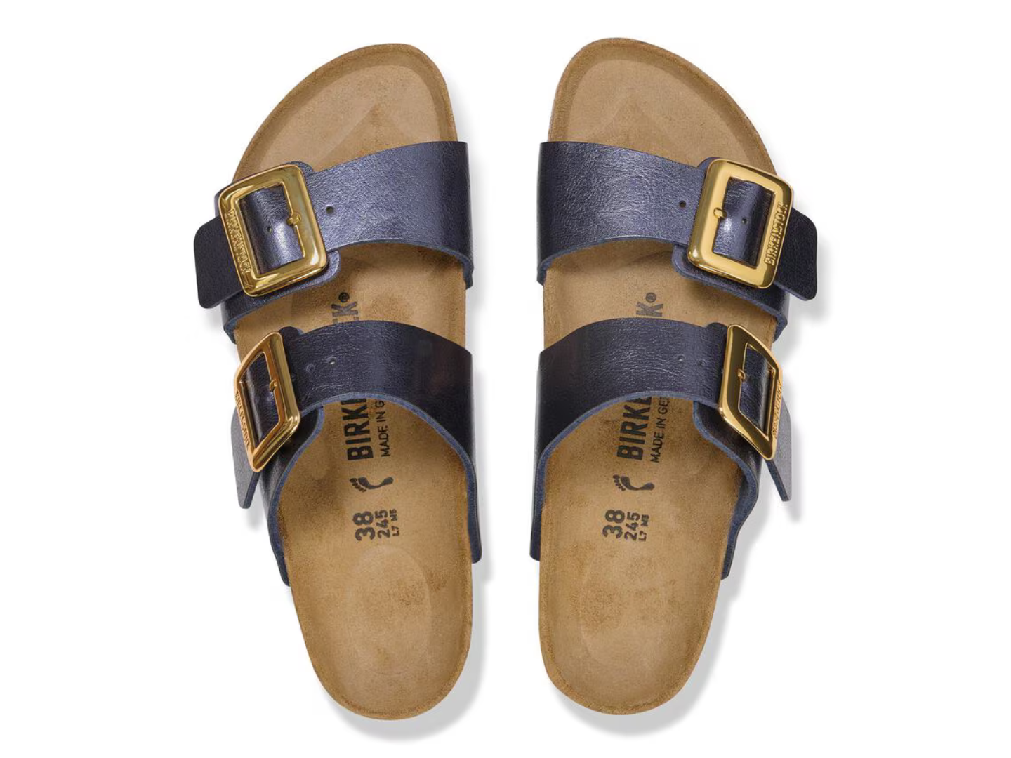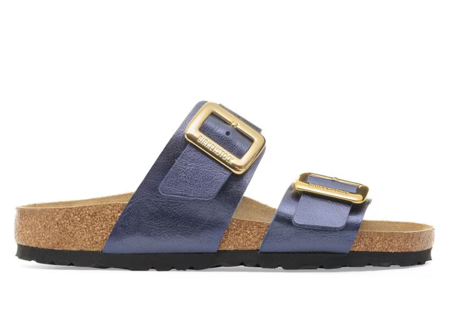 The BIRKENSTOCK Sydney proves that fashion and functionality can go hand in hand. With its two simple straps, it’s a real hit with women who want both high fashion and comfort. This sandal version has a silky sheen finish. The shiny, gently rounded padded buckles are especially eye-catching. The upper is made from the skin-friendly, hard-wearing synthetic material Birko-Flor®.