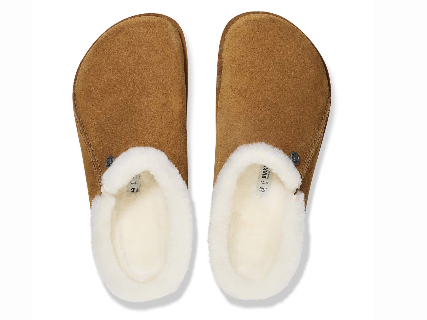 Meet the ultimate slipper - The classic Zermatt is now available in a cozy premium design. This version features a genuine shearling lining and an rubber outer sole, making it ideal for lounging indoors & outdoors. All the comfort of a slipper with the BIRKENSTOCK support you've come to know. The upper is made from soft suede. The perfect holiday gift for any BIRKENSTOCK fan.