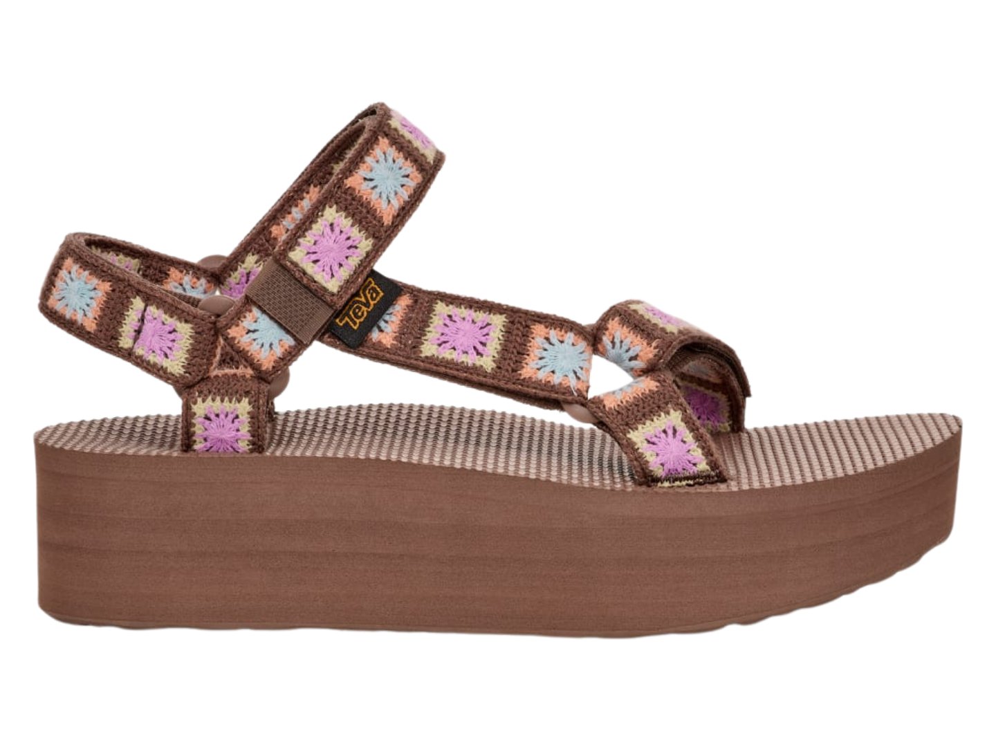 Featuring soft crochet straps inspired by vintage “granny squares,” this whimsical Flatform is ready for festival grounds to picnics in the park. Elevated by a 1.5-inch platform, the Flatform Universal Crochet is grounded in the same durable rubber outsole that made the original a closet staple.