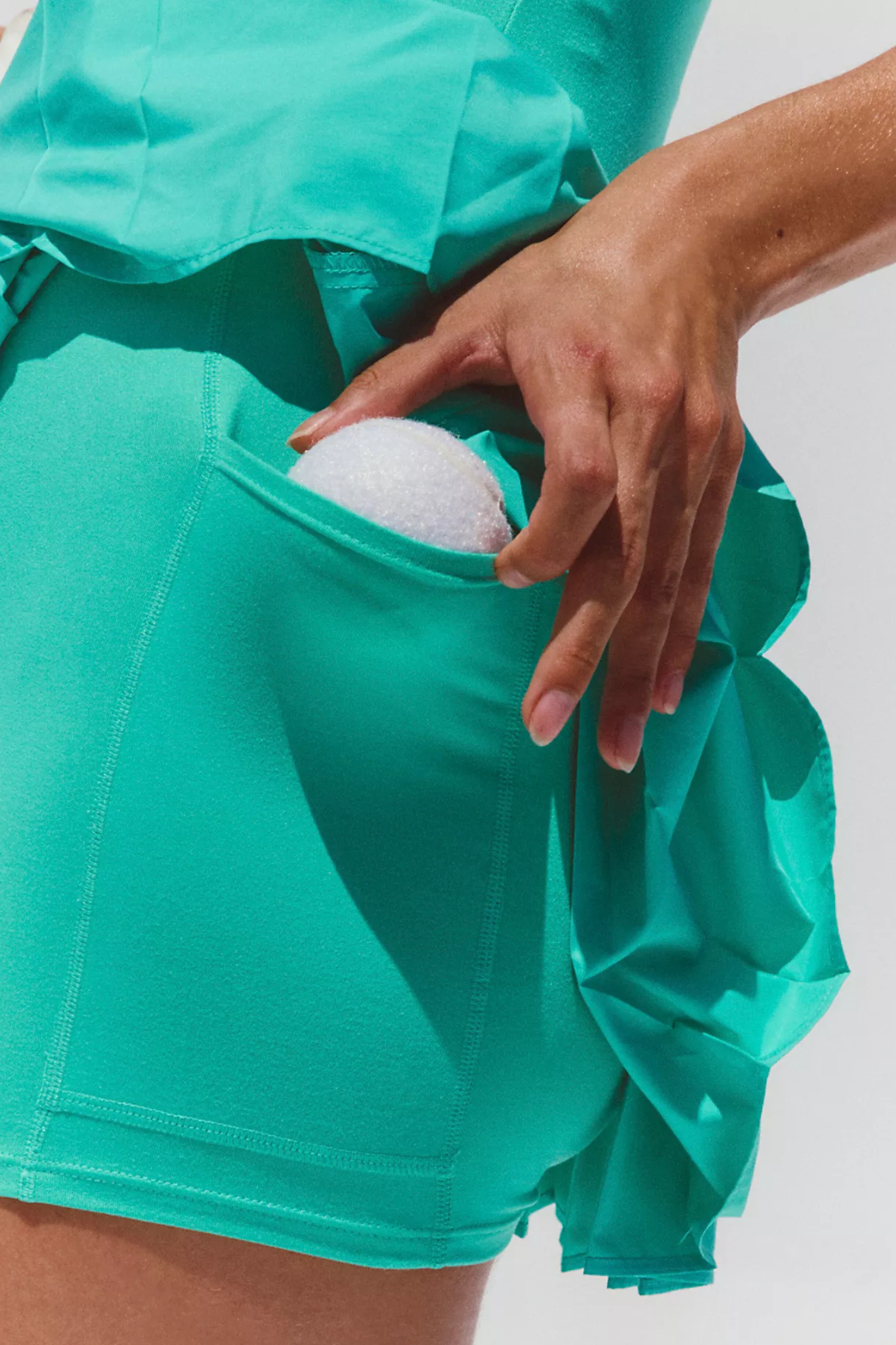 Designed for all your favorite court sports, this flattering dress is featured in a soft fabrication and classic pull-on style with a pleated bottom skirt and built-in performance shorts.
