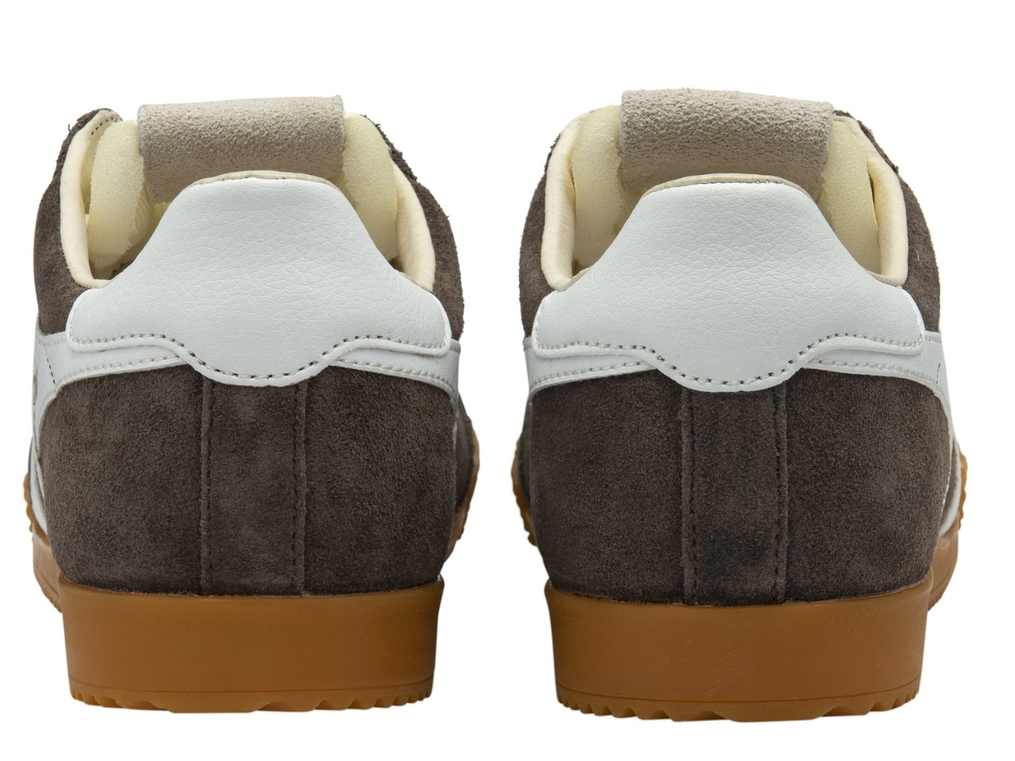 When it comes to heritage sports Gola has a tale to tell and Elan’s roots as a multi-purpose training shoe can authentically make this claim. An old school gum sole, in just the right vintage tone, is reminiscent of days in the school gym, whilst saturated colour combinations such as this mocha and white, give a thoroughly modern looking women’s sneaker. You’re not mistaken if you can see the resemblance to Gola’s flagship Harrier style, Elan is almost a twin but has an additional heel tab panel to give an extra colour pop. Selling out as quickly as we get them in, this is the hottest women’s Gola sneaker of the season.