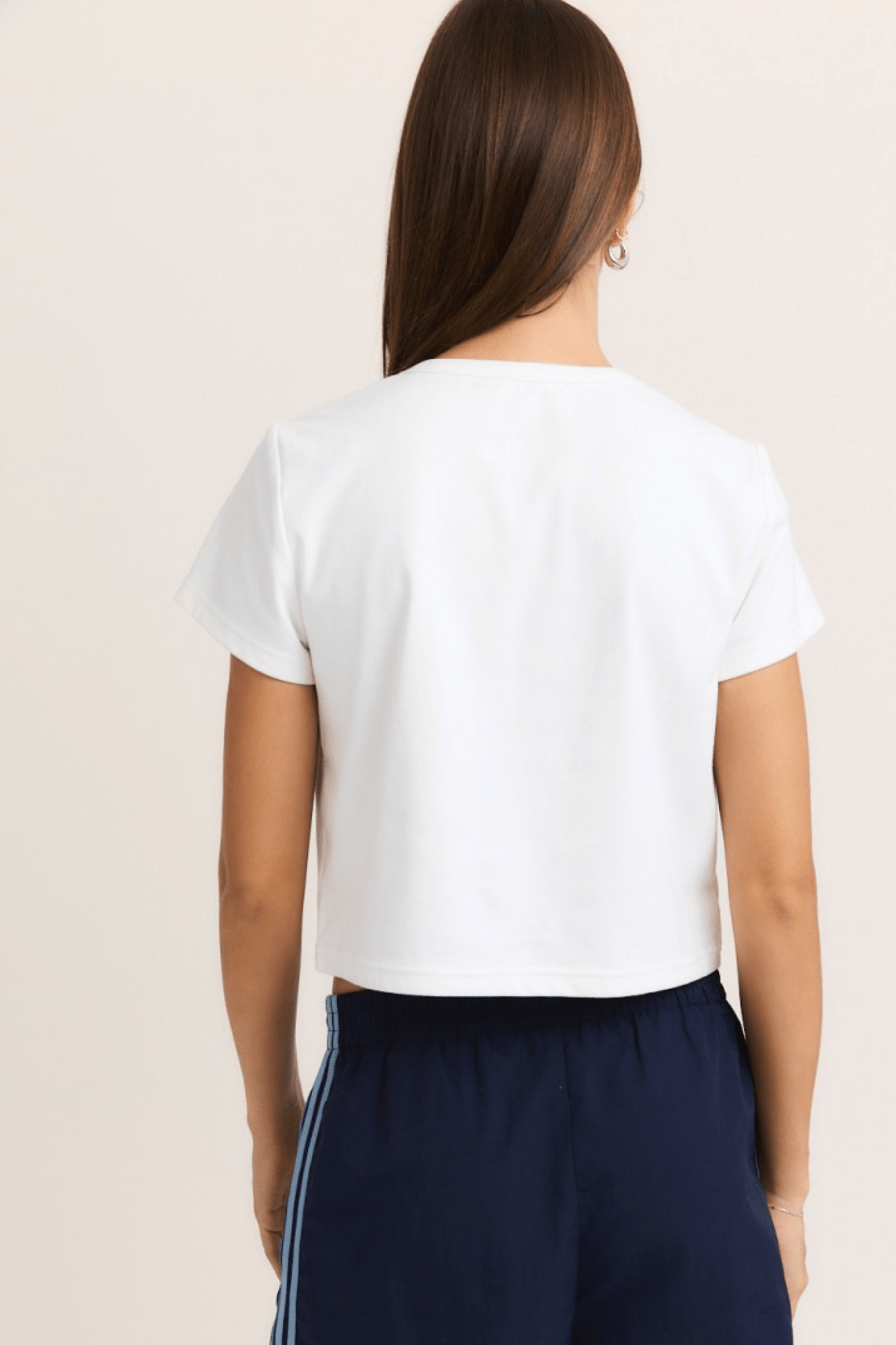 Le Lis: "Bear" embo short sleeve round neck baby tee in white; style # IT5105-1