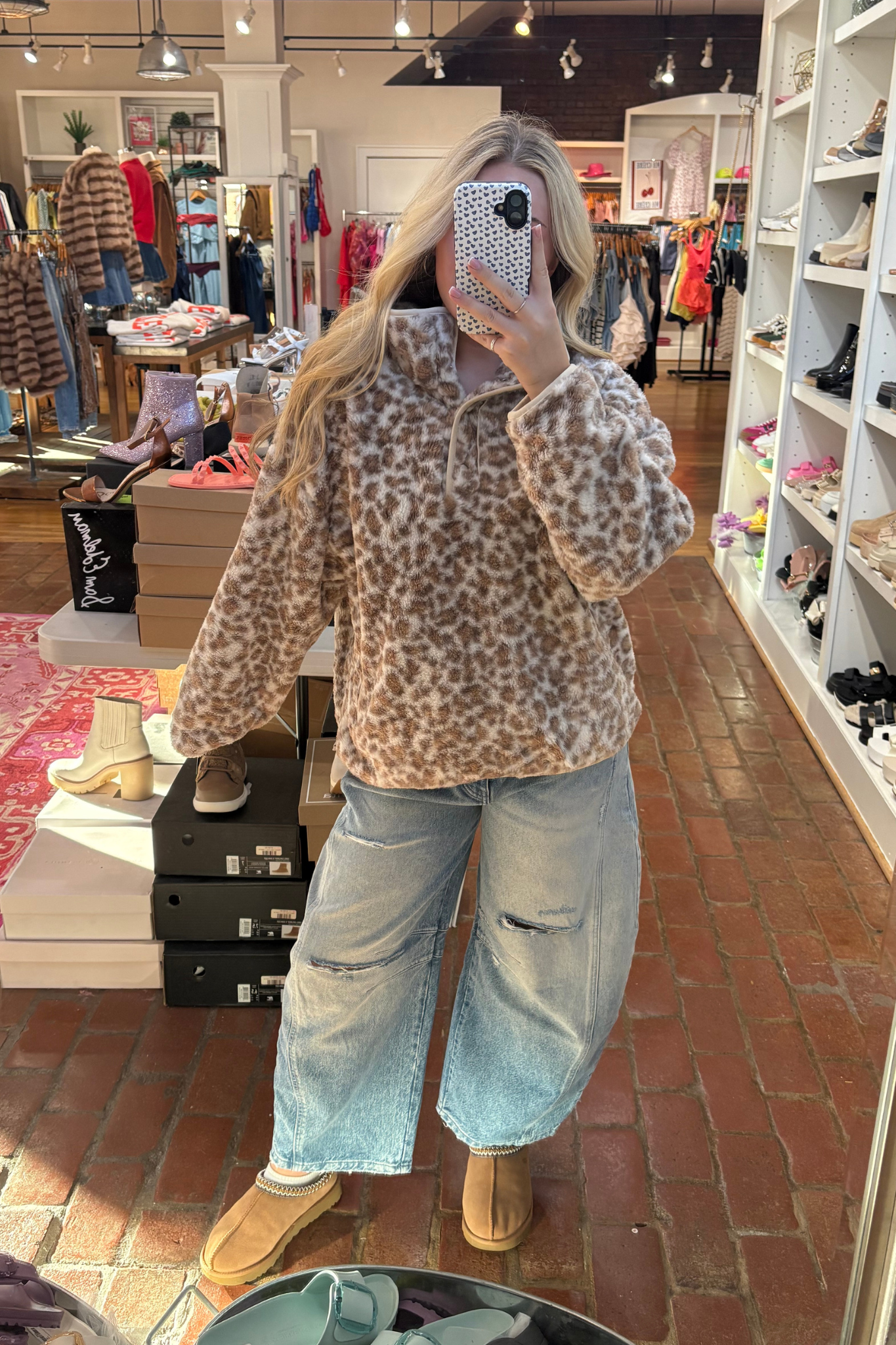 Le Lis: Long Sleeve Top with Leopard Fleece in Ivory-Brown Animal