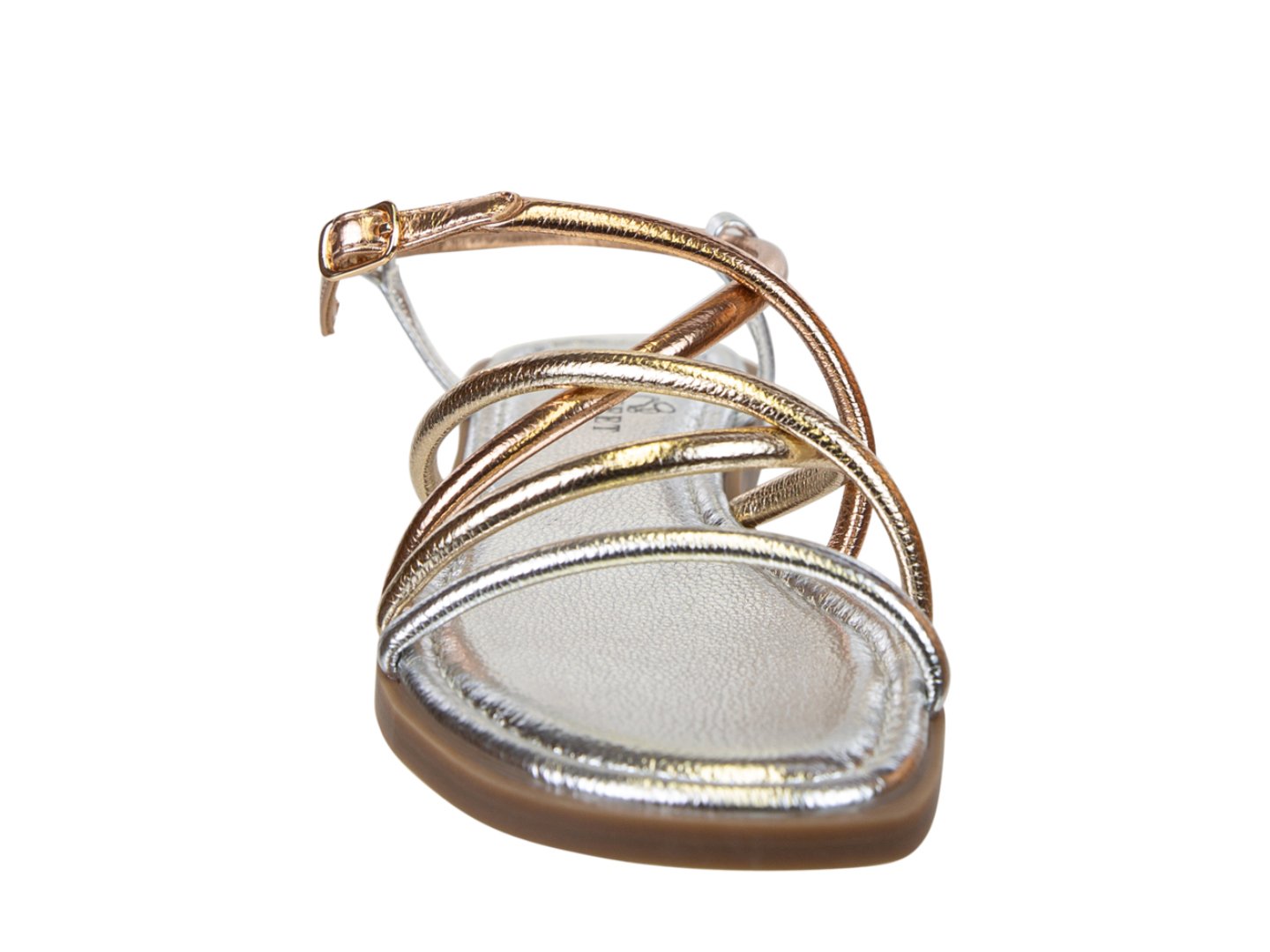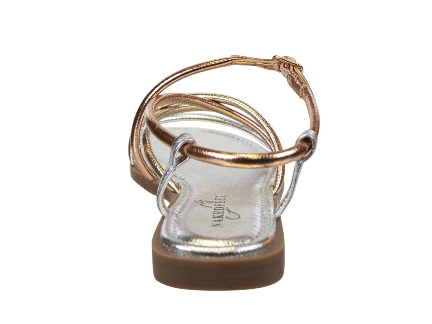 Your search for the perfect metallic strappy sandals is over. Wear for everyday or occasions, Minimalist in gold¿s padded tubular design features a mix of rose gold, silver and bright gold, designed to be the ¿it¿ sandal of the summer that you can wear with literally anything. With ancient inspirations and a modern design, the mix of metallics is made to adorn you in ethereal beauty paired with any of your favorite accessories. Discover the difference Naked Feet makes in the only occasion wear sandals you need to transition effortlessly in elegance day to night.