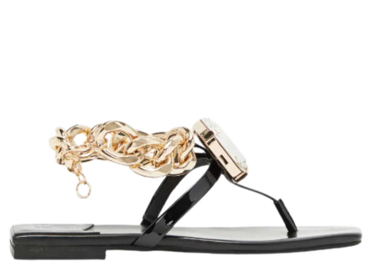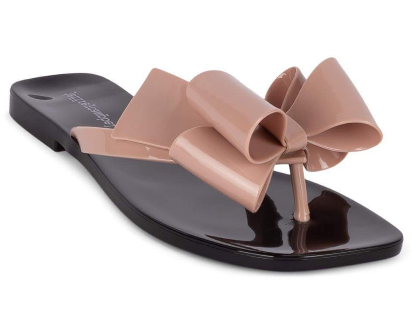 Tubular straps and a contemporary toe ring bring distinctive style to a slide sandal that will complement your chic warm-weather wardrobe.