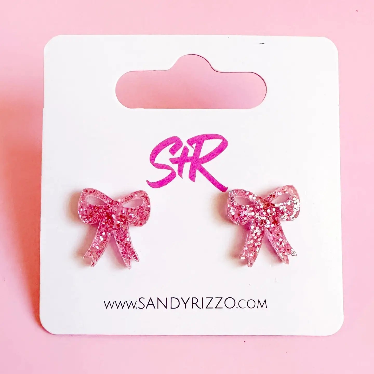 Sparkle Bow Stud Earring in Pink by: Sandy + Rizzo