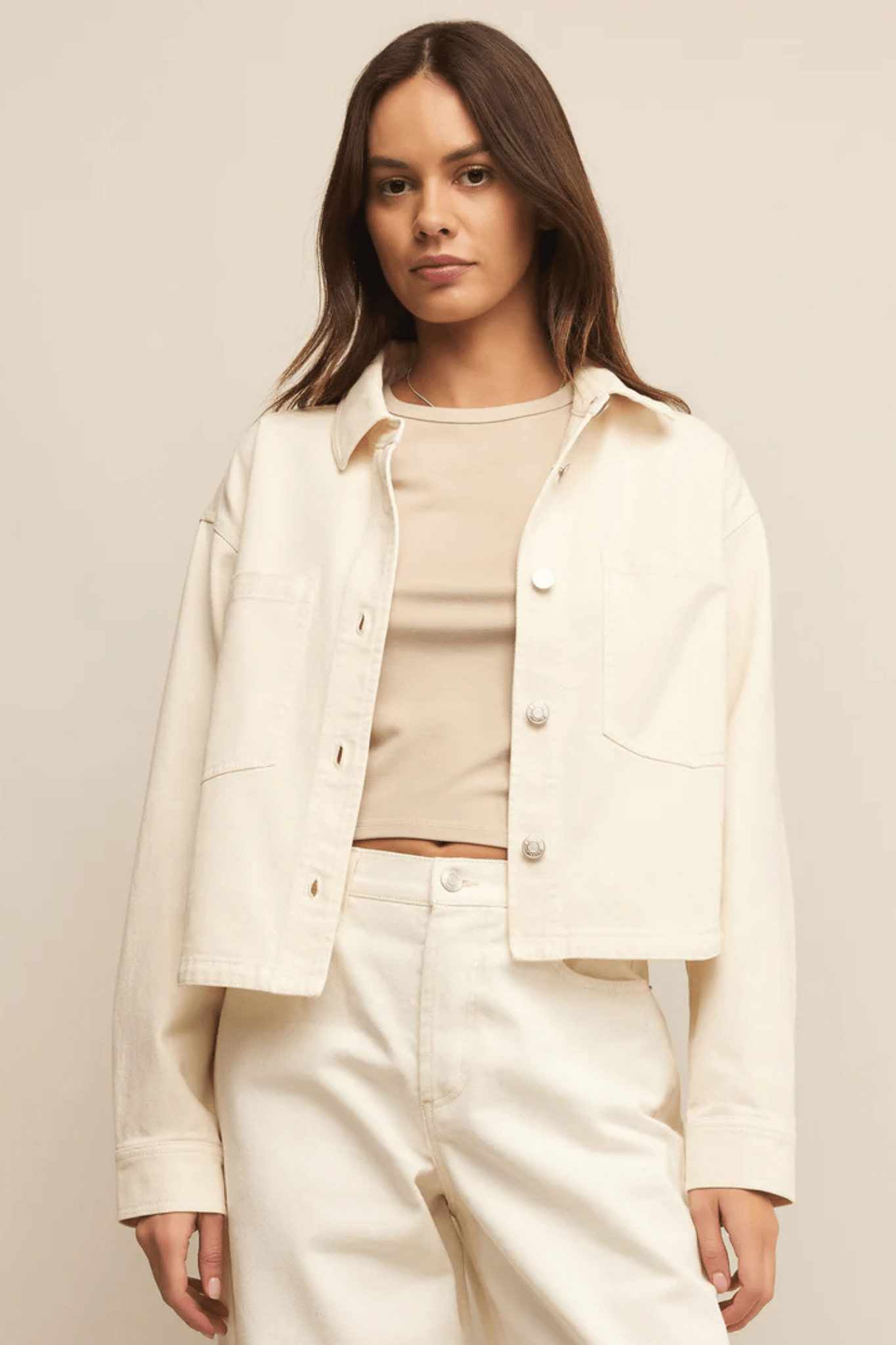 All Day Cropped Denim Jacket in Off White by: Z Supply