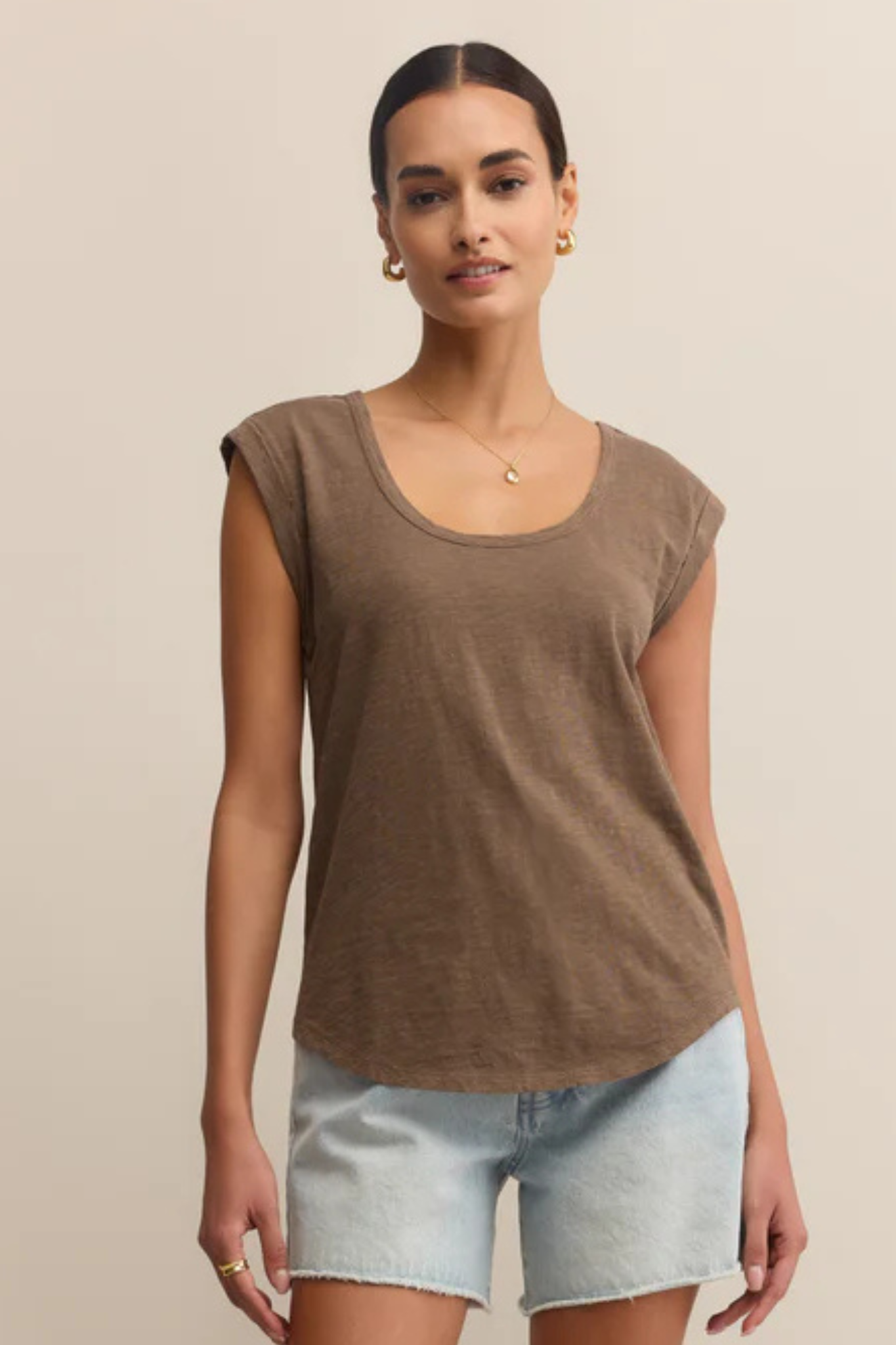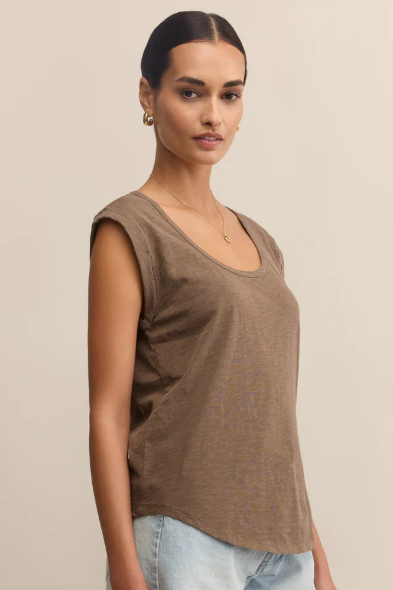 Laid-back and endlessly layerable, this cotton slub jersey tank features a deeper scoop neckline, rolled sleeves, and flattering rounded hemline. Worn tucked or untucked, it's the kind of everyday piece you’ll wear on repeat.