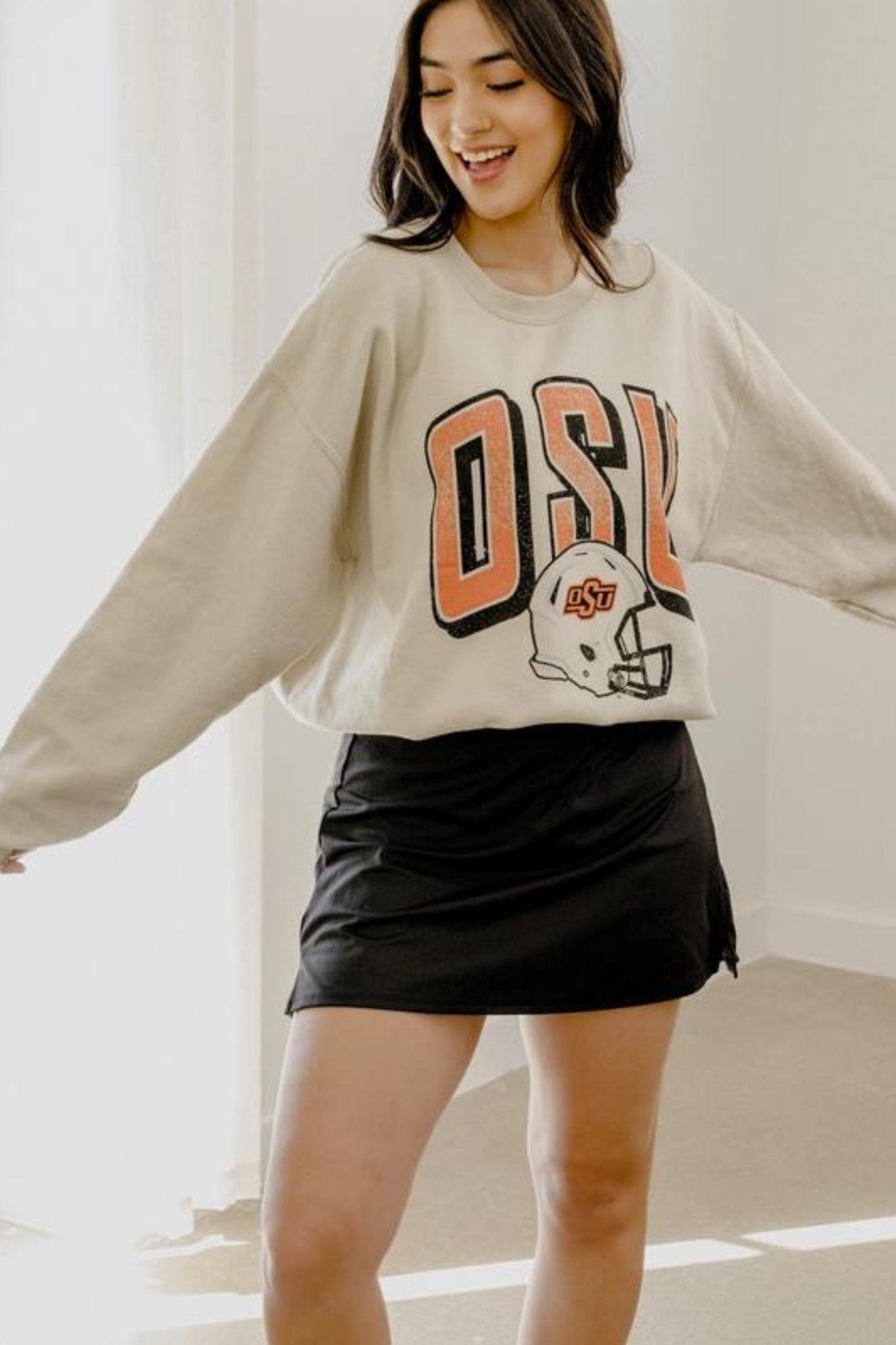 Livy Lu: OSU Oklahoma State Cowboys Barbie Thrifted Sweatshirt in Sand