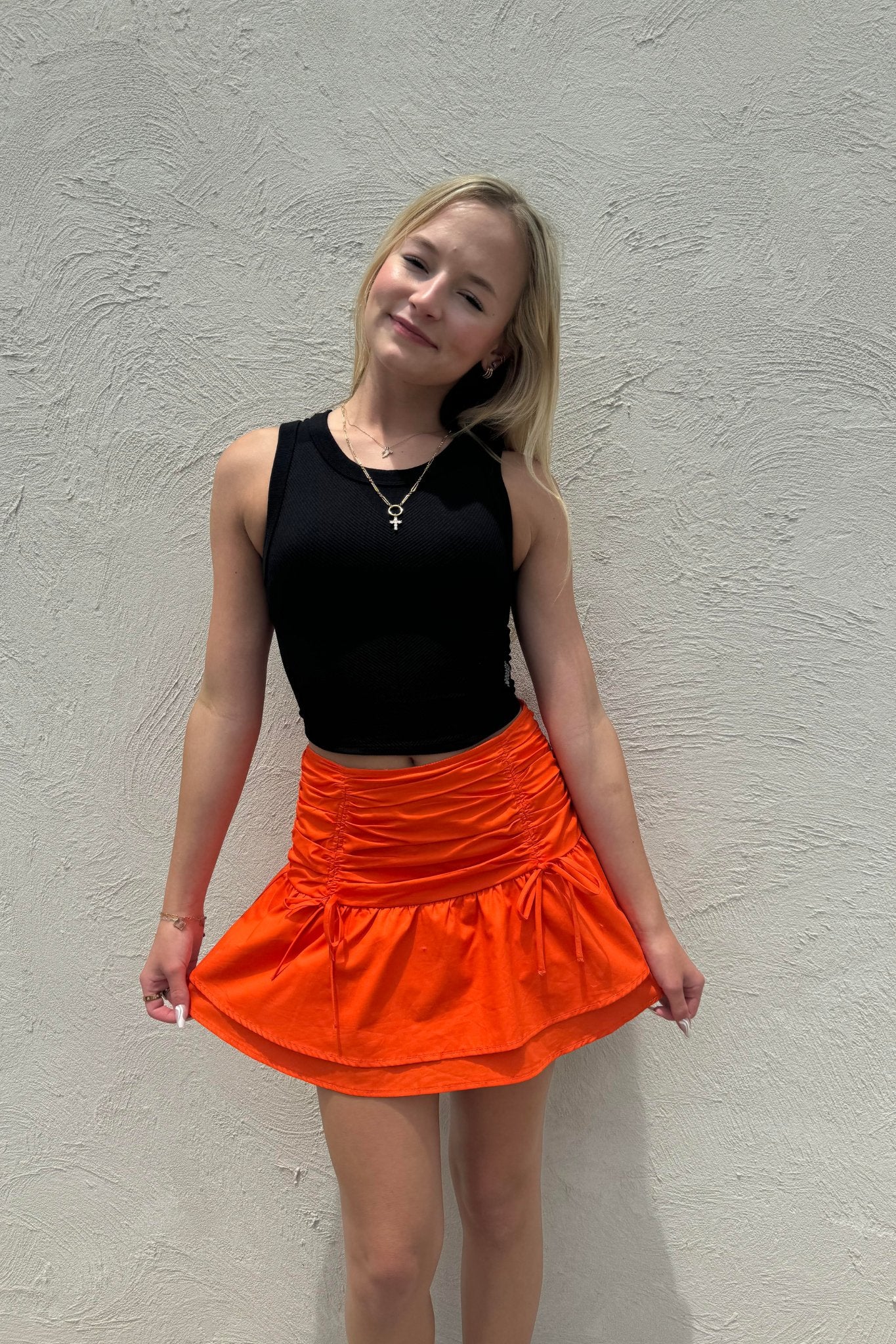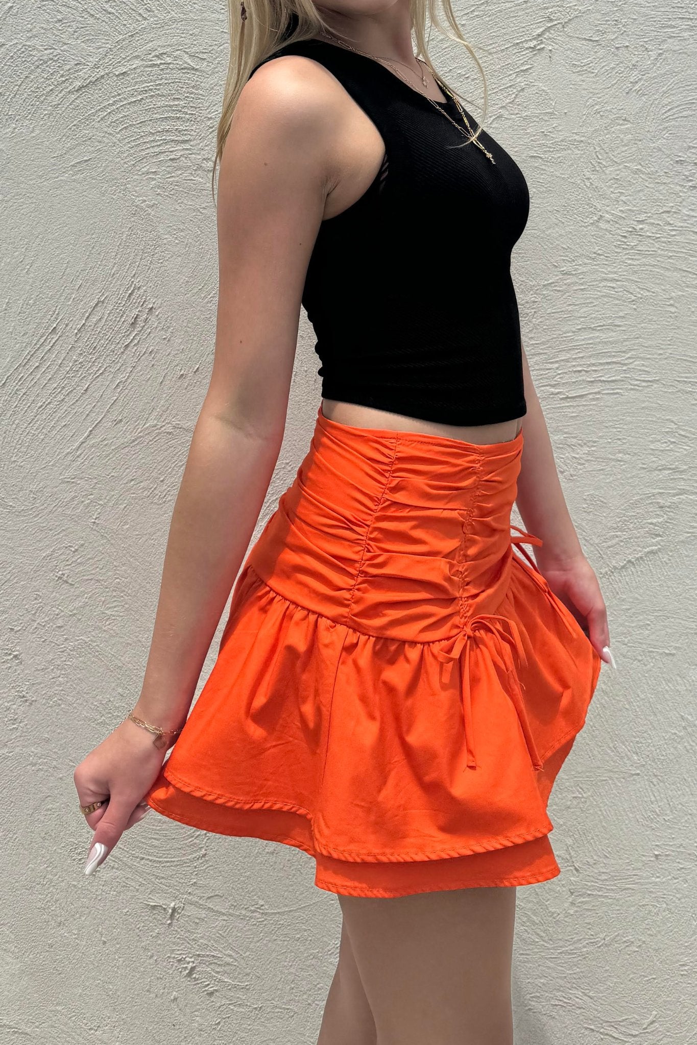 Baby Pink: Tie Vest and Skirt Set in Orange