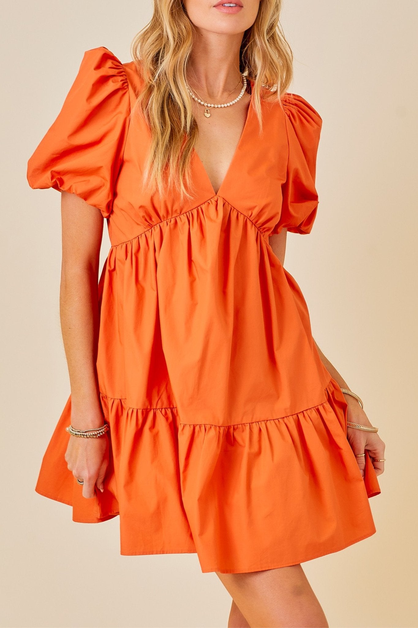 Baby Pink: Tie Shoulder Mini Dress in Orange