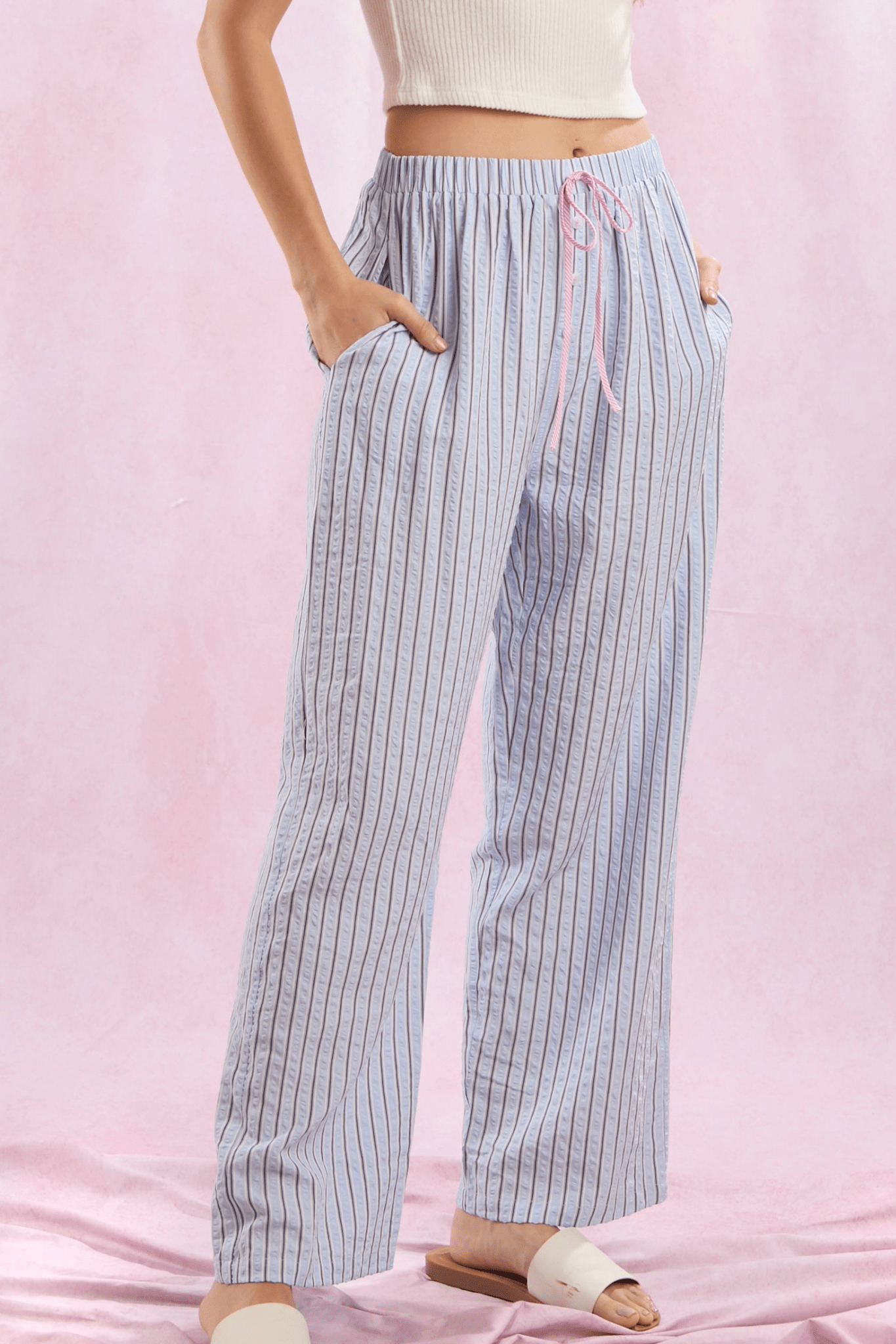 Stripe waist ribbon pants