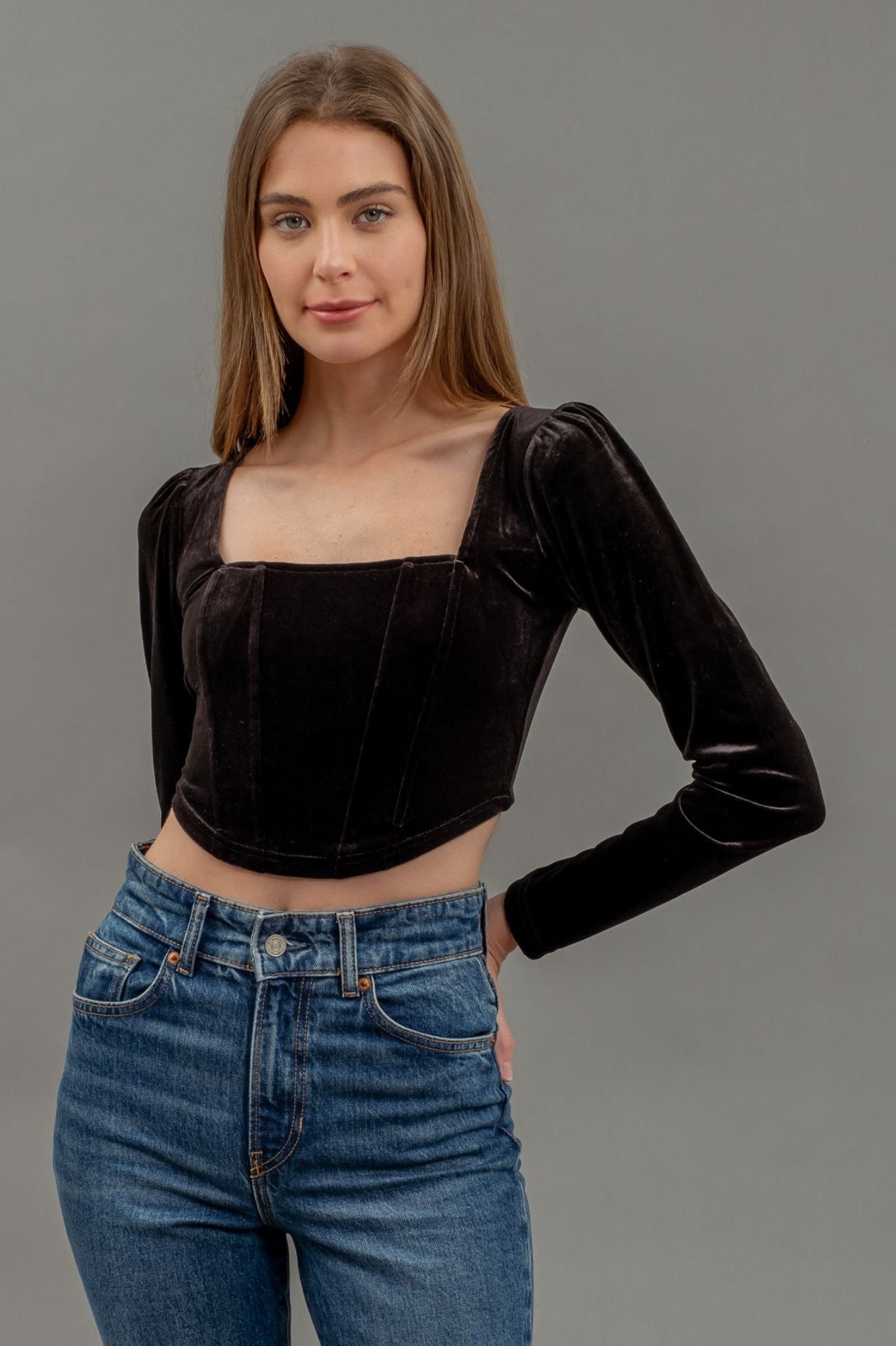 Mine: Velvet square neck long sleeve corset top in black style #: CR2413