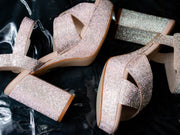 Platform two-strap sandal with chunky heel.