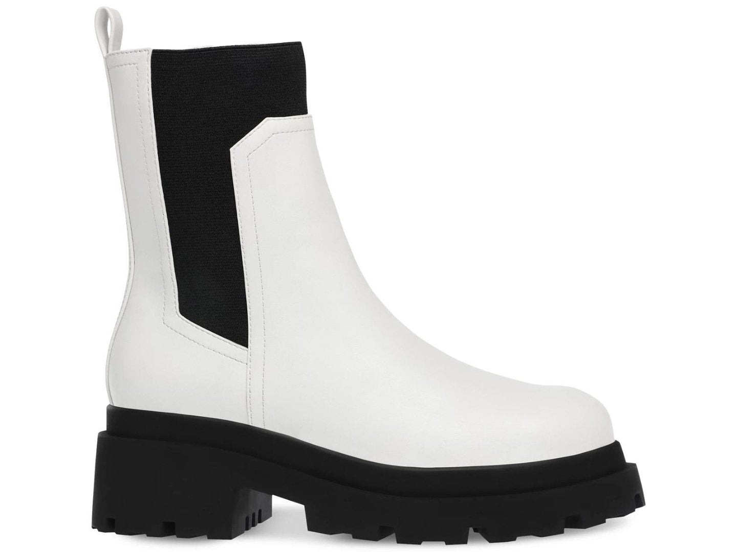 - Side gores joined by cuff at front; back heel tab; lug sole