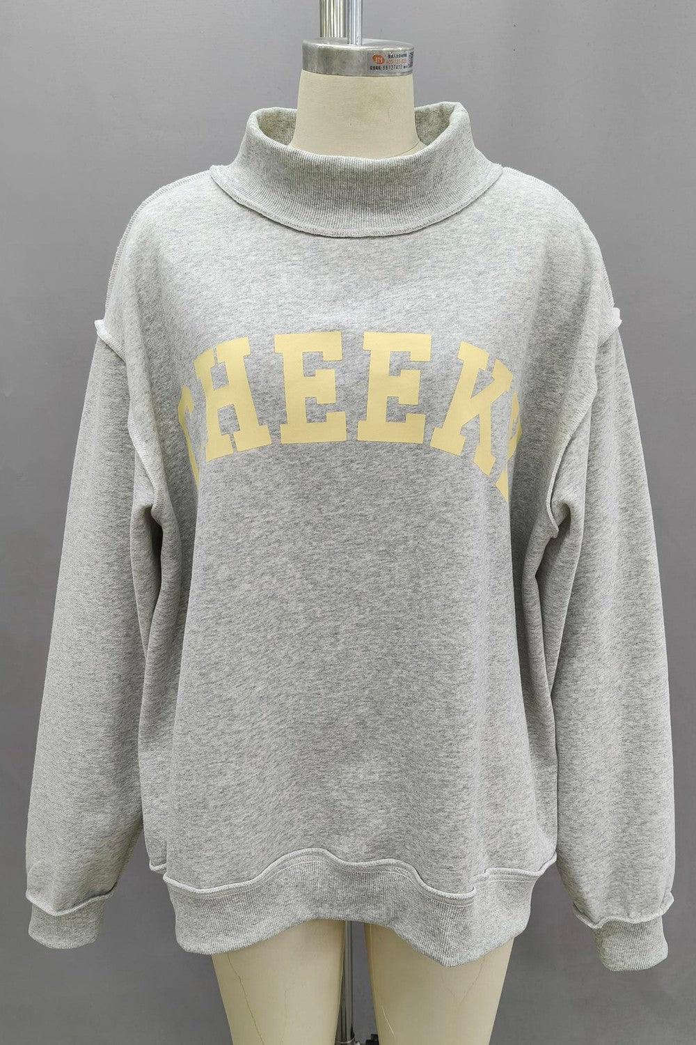 BucketList: "Cheeky" & "Delulu" Reversible Mock Neck Sweatshirt in Heather Grey and Yellow;