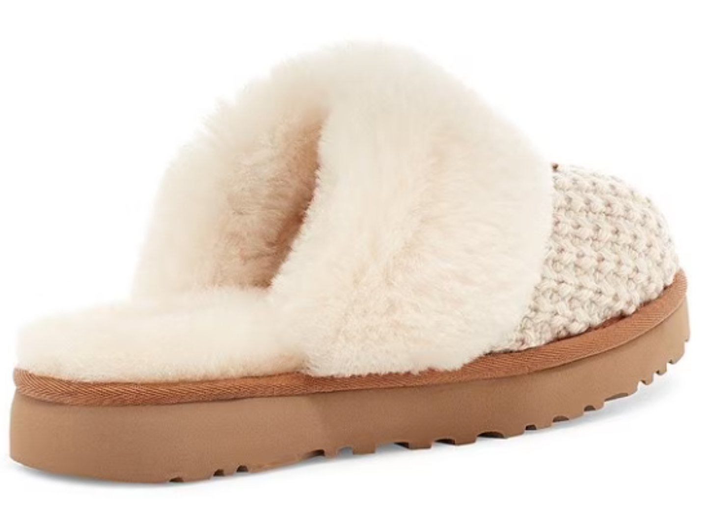 A soft, sweater-knit upper and lush sheepskin lining add softness and style to this outdoor-friendly slipper. Featuring a fluffy collar and our super-light, durable sole, it slips on with Saturday sweats, faded denim, or your favorite knit pieces.