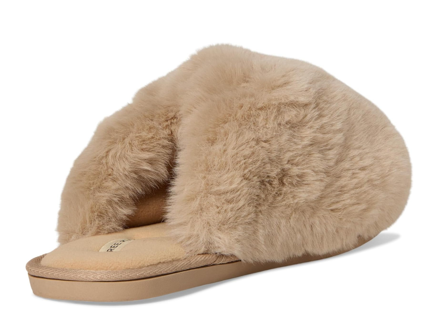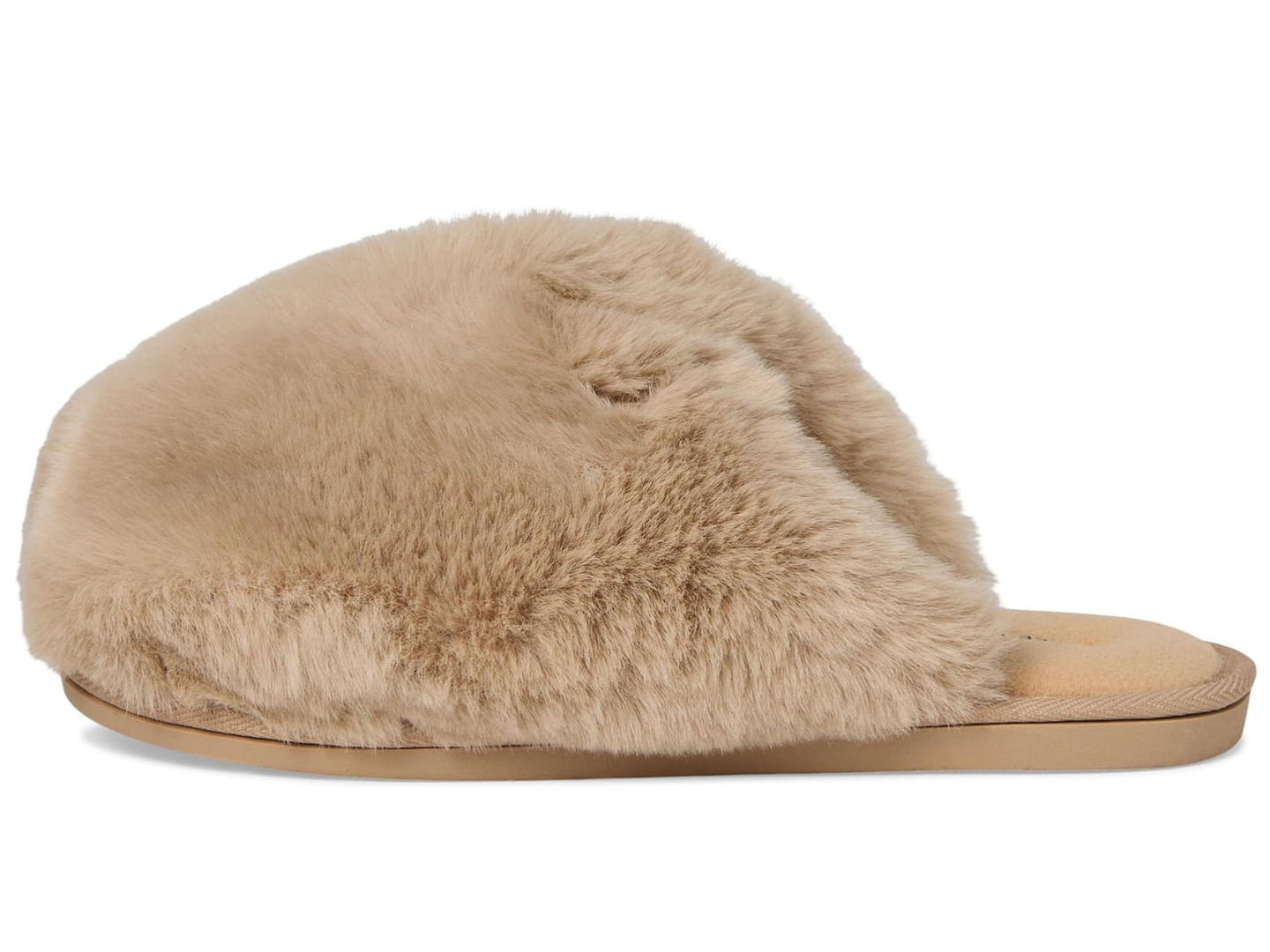 Features: Slip-on style, backless design, oversized faux fur uppers, flat rubber outsole