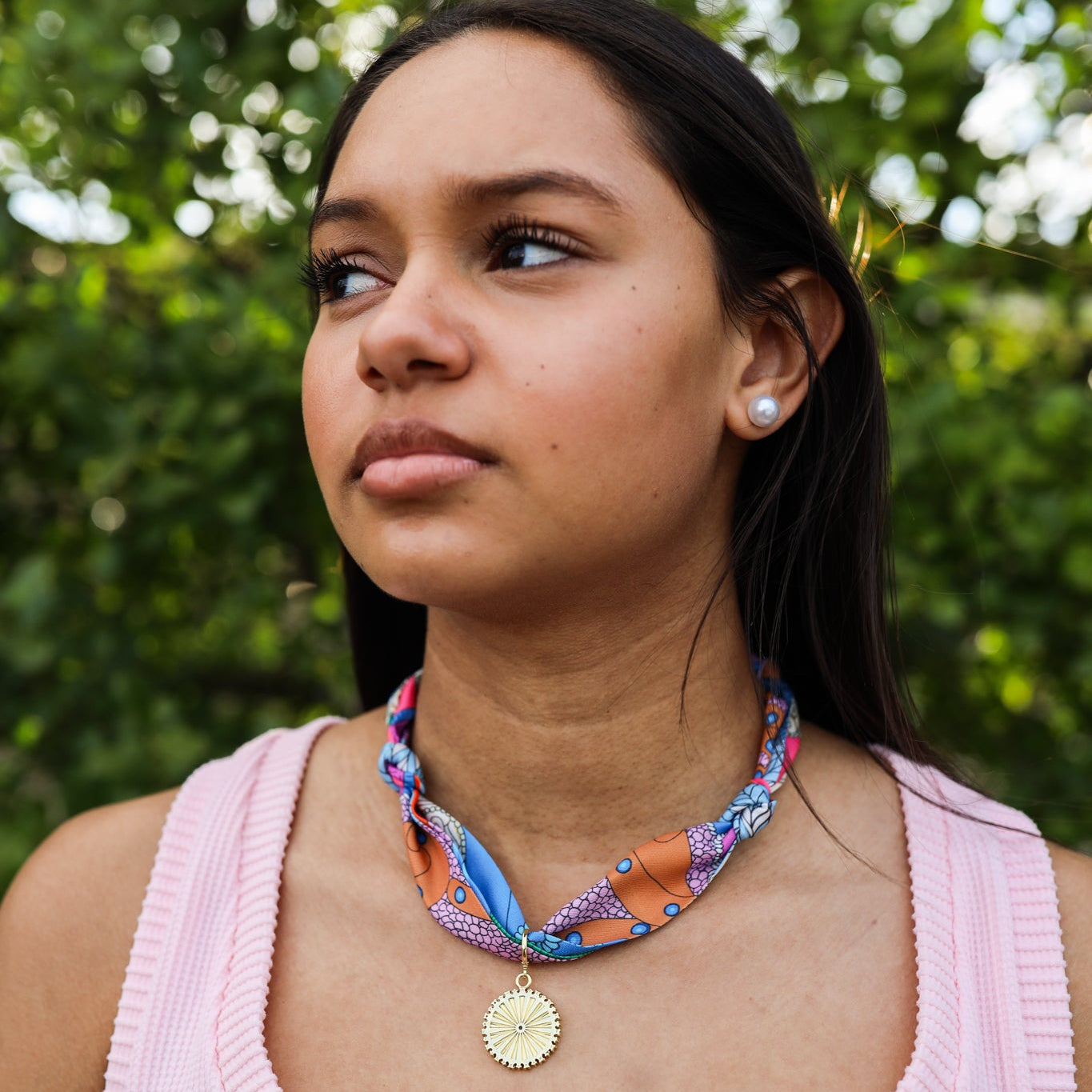 Scarf F Necklace in Turquoise Coin by: Gemelli