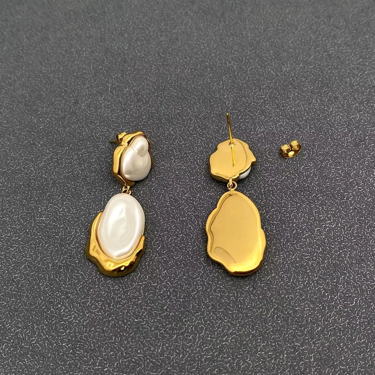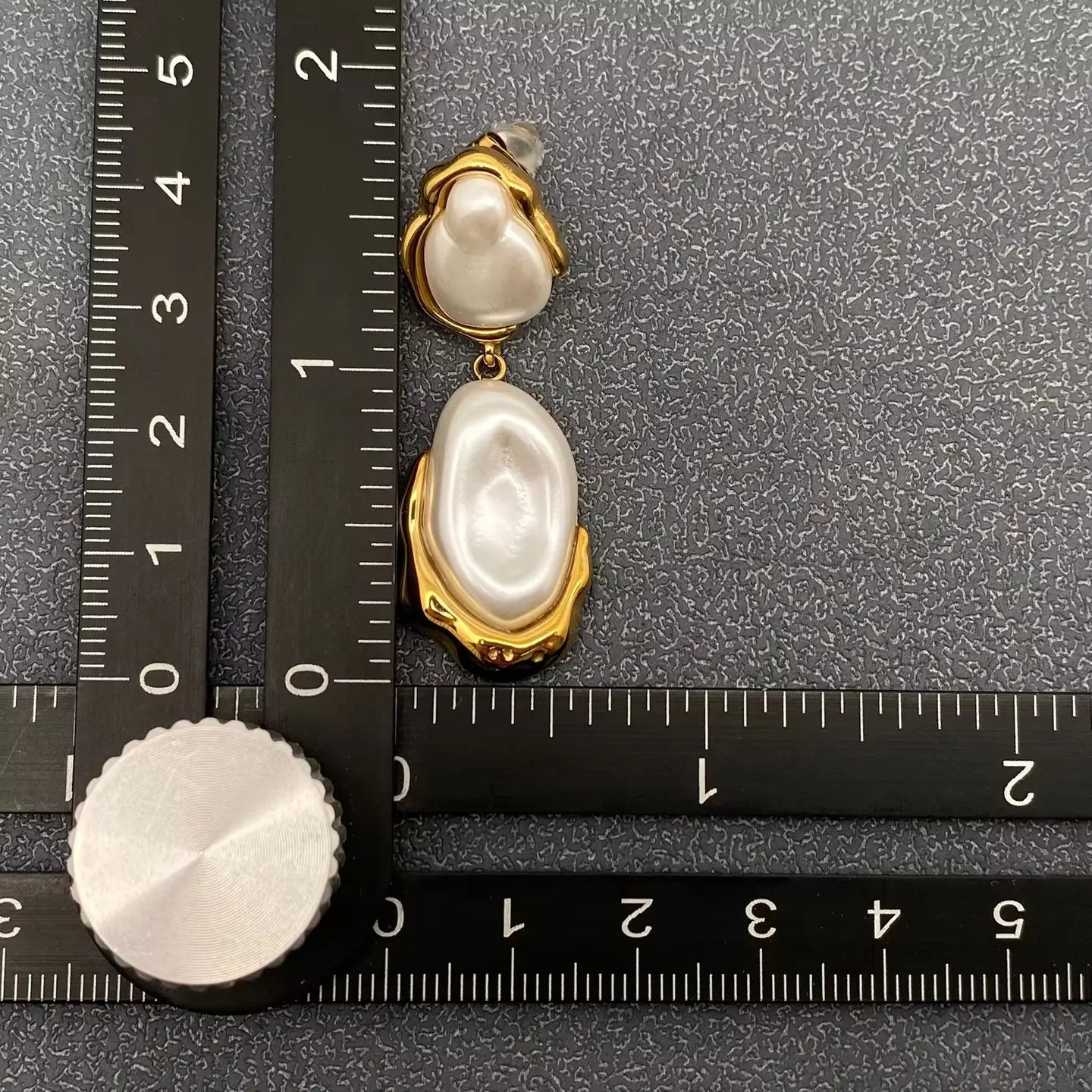 Type: earrings Material : 316L Stainless steel ,Pearl,18K gold plated Size : 16mm *44mm Process: Vacuum electroplating and manual polishing,Non tarnish Surface : High Polish ★Made of high quality stainless steel,Lead-free,Harmless to Human Body. ★Perfect jewelry gifts