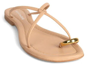 Thin cross-band flat sandal with metal toe-loop