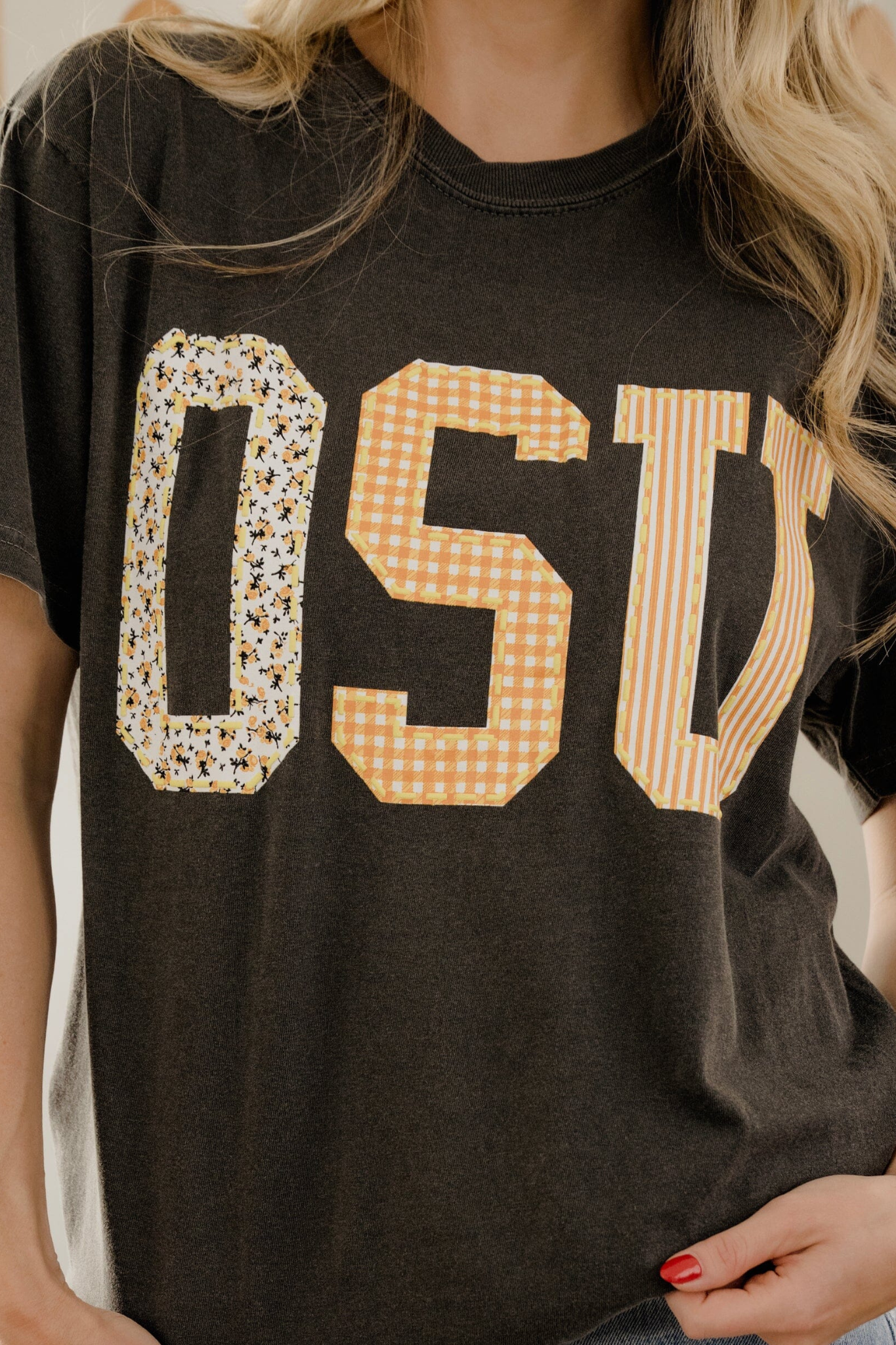 Livy Lu: OSU Cowboys Quilted Puff Ink Tee in Pepper