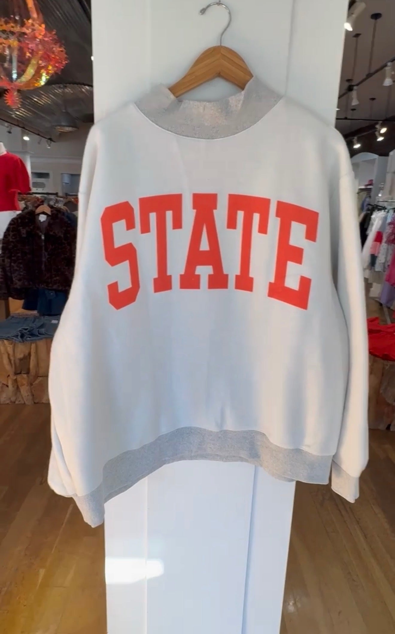 Oklahoma state university mock neck sweatshirt in Gray reversible with STATE