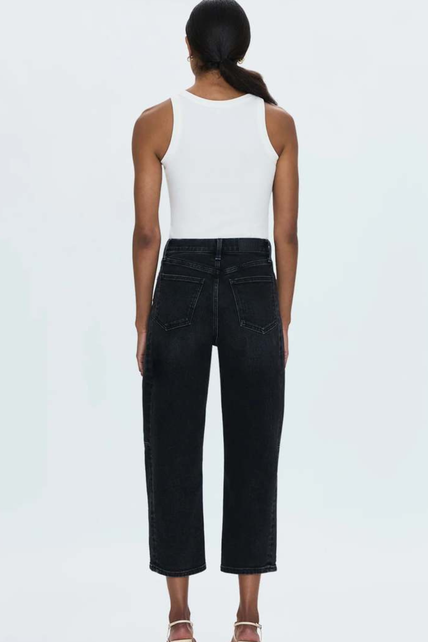 Meet the Eli jean, a modern denim staple from Pistola. The slight bowed shape is defined by dark contouring to make your legs appear elongated, and give a slimming look throughout the entire fit. In a comfort fabric, it has a structured fit with just a touch of stretch. Materials - Material: 70% Cotton, 19% Polyester, 10% Viscose, 1% Spandex - Care Instructions: wash cold Sizing - Rise: 12 1/2 ", Inseam: 26", Leg Opening: 17 " - Model is 59 wearing size 26
