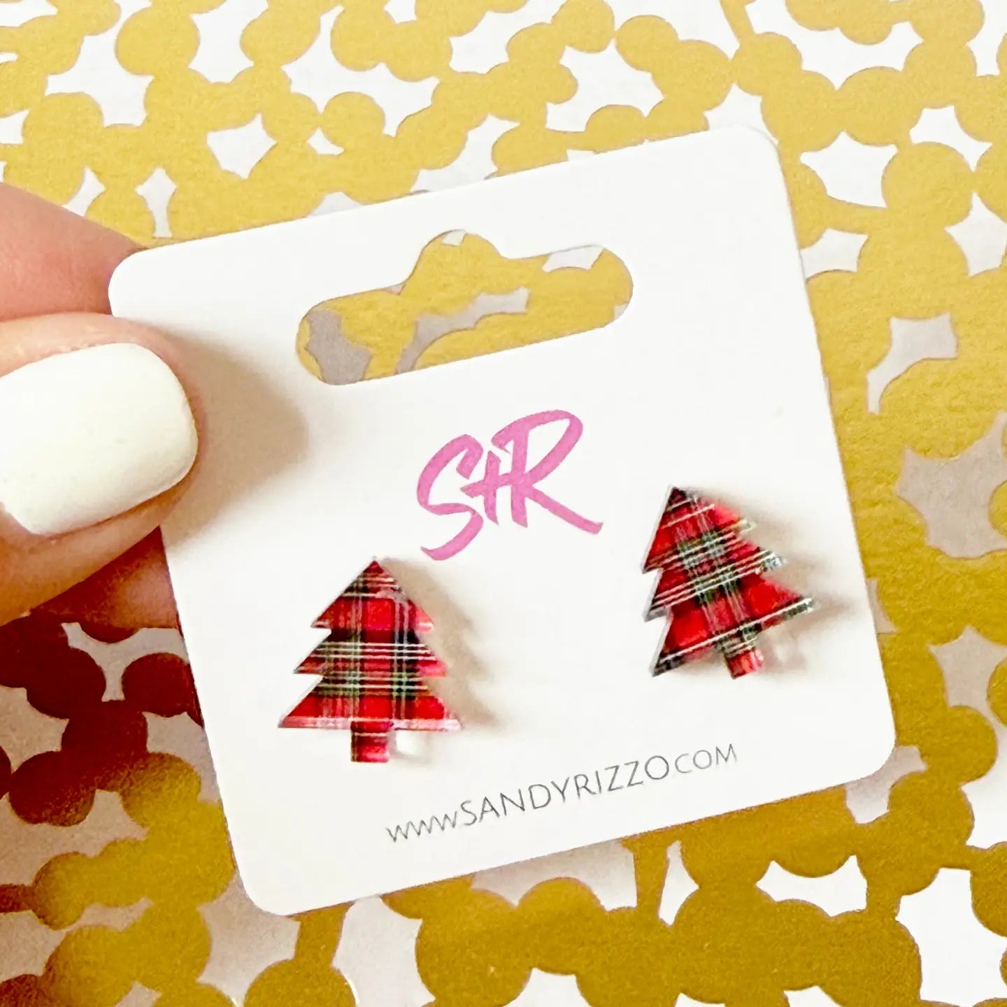 Acrylic Christmas Tree Stud Earring in Red Plaid by: Sandy + Rizzo