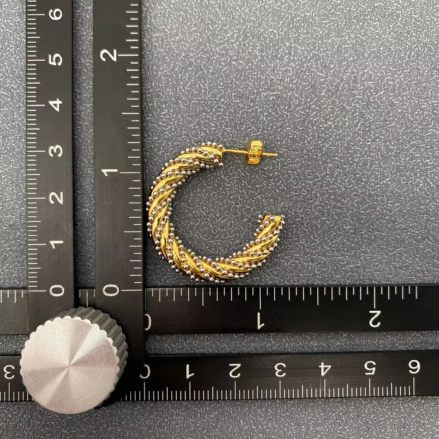Steel Ball Twist Hoop Earrings in Gold by Mio Queen