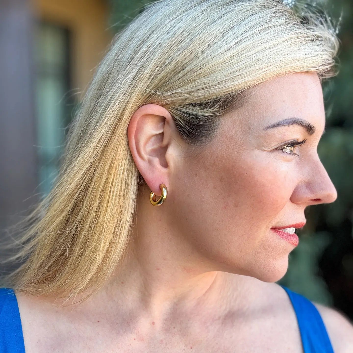 Infuse your store with a touch of sparkle with our exquisite 14k gold plated hoop earrings! These chic hoops blend sophistication and charm, sure to captivate every fashion enthusiast. Whether your customers want to add a bit of glam to their daily ensemble or find the perfect gift, these hoop earrings are an essential addition. Details * Earring size: .75" diameter * Backer card size: 2.75" x 3.5" * 14k gold plated * Surgical stainless steel * Hypoallergenic * Lightweight * Nickel and lead free * Imported