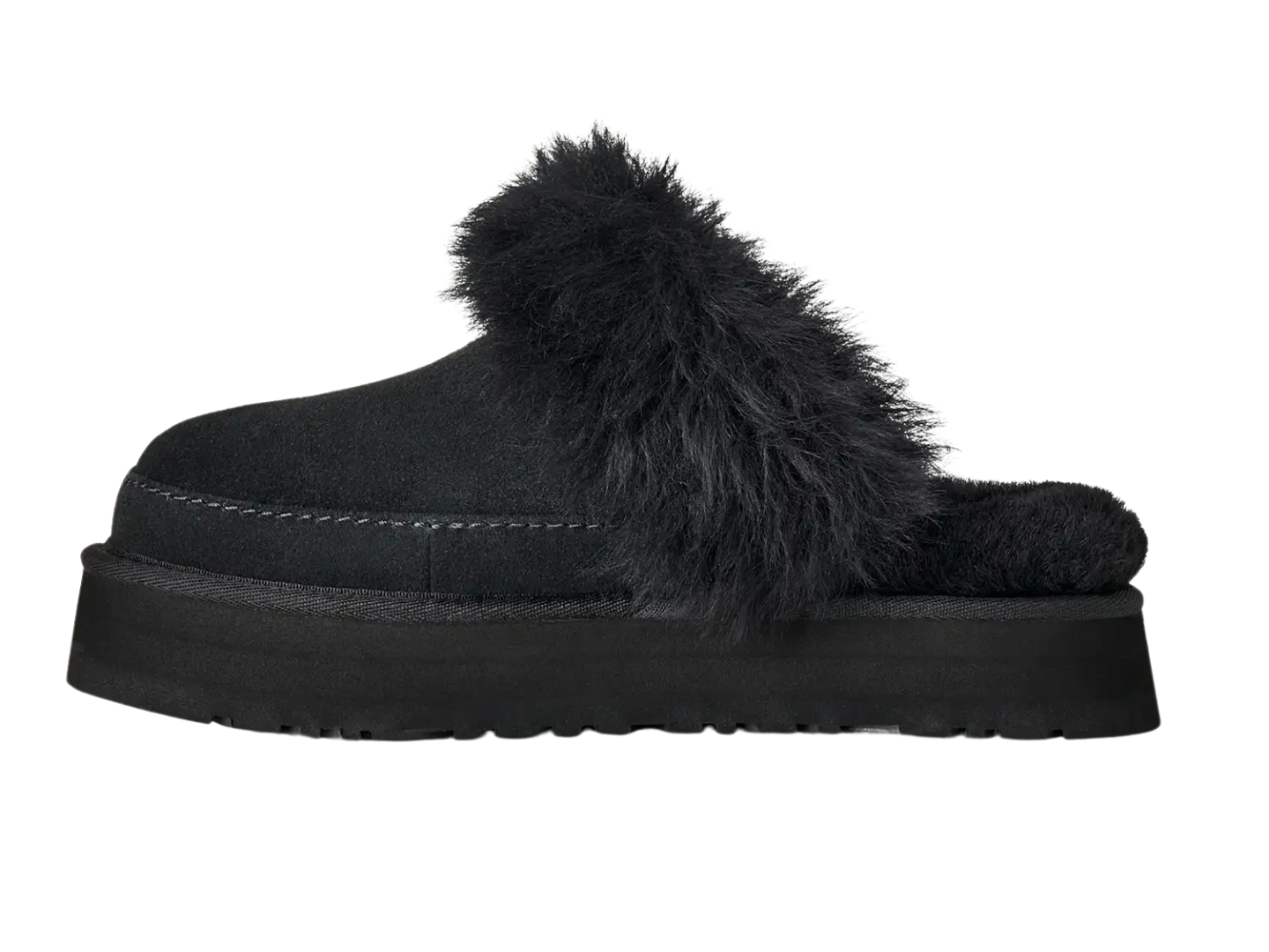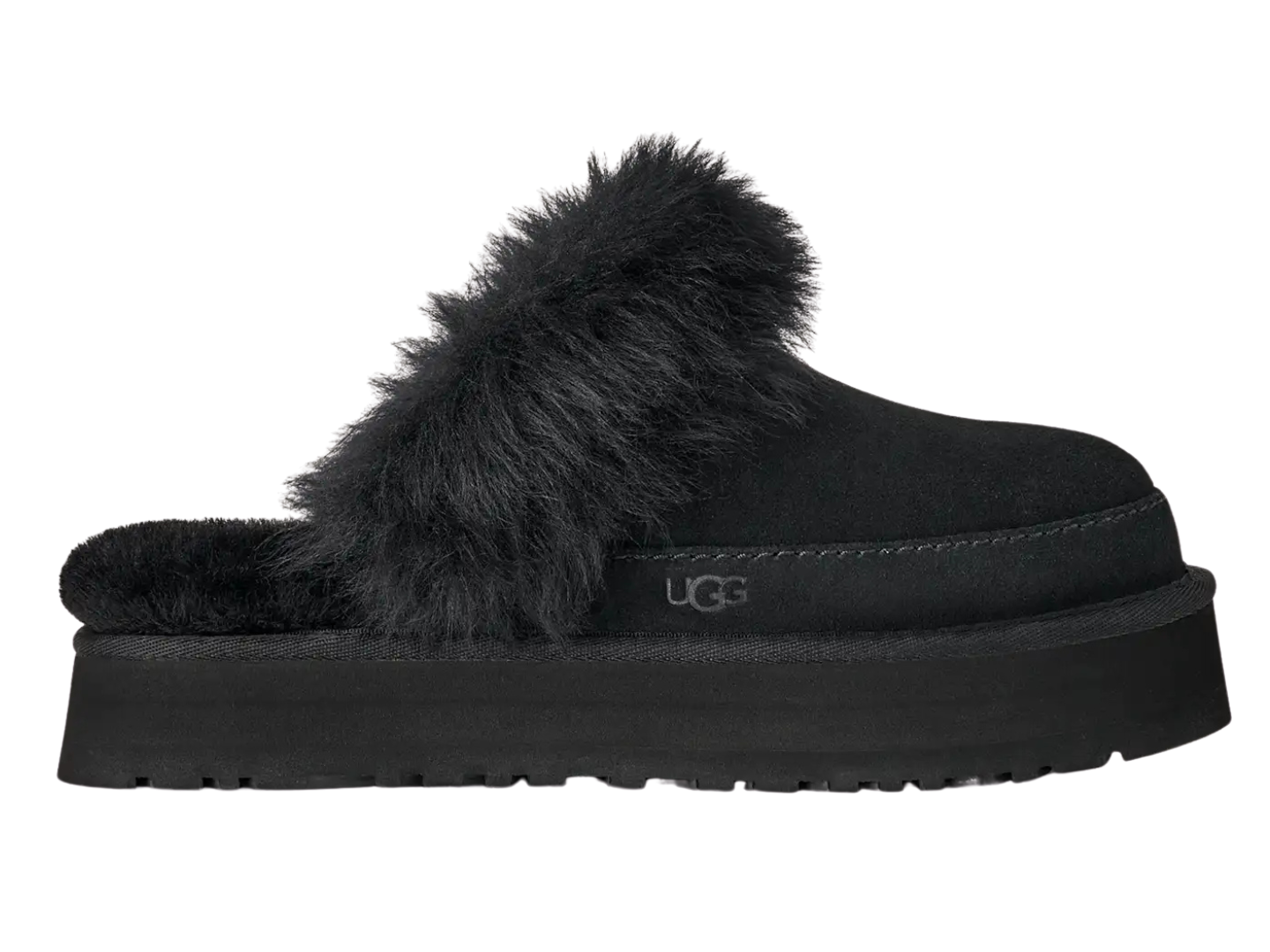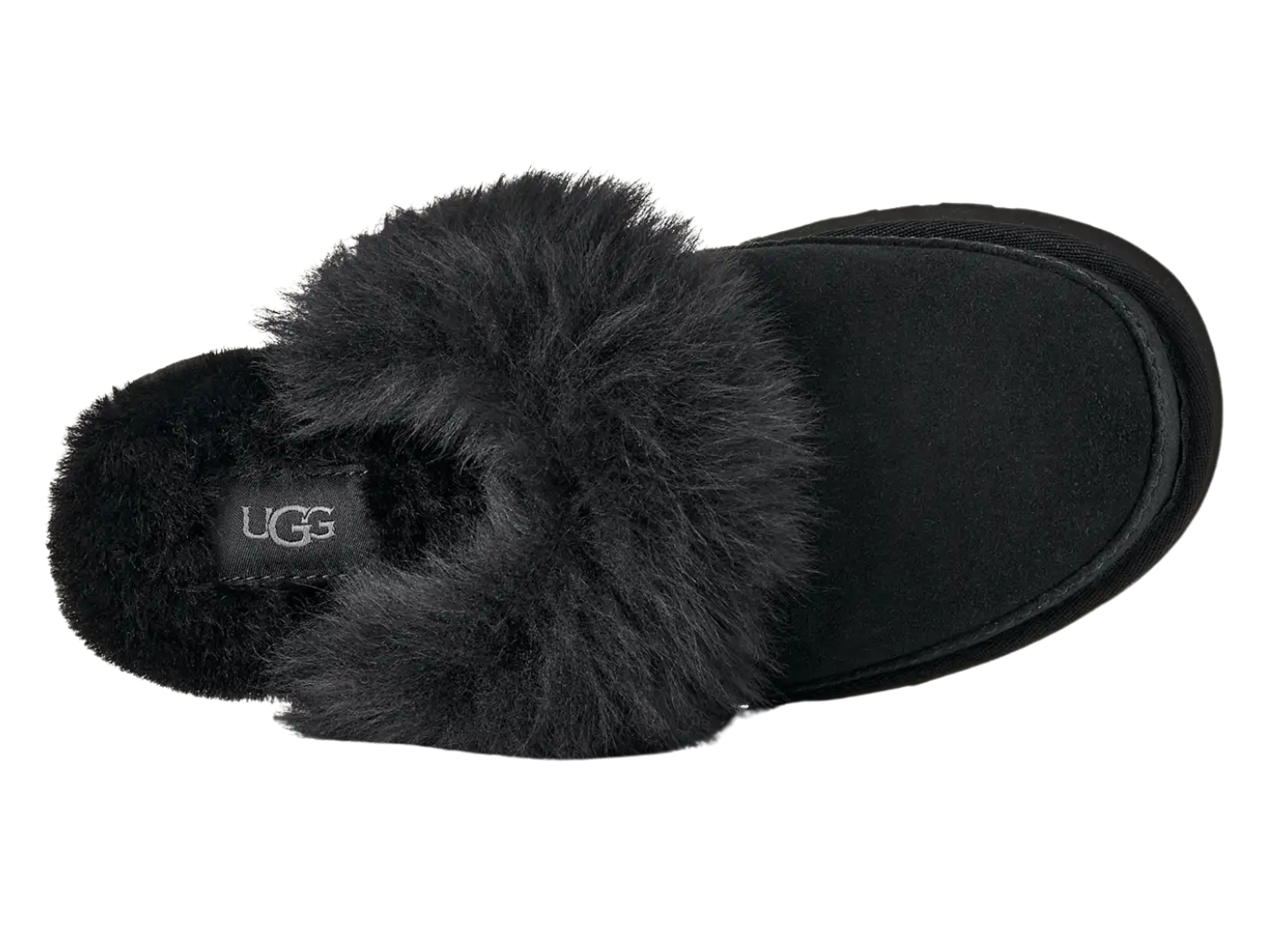 When the weather outside is frightful, our Disquette Chalet is so delightful. This decadent slipper delivers surrounding warmth, from the sheepskin insole and UGGplush™ lining to the fluffy sheepskin collar. Designed to be worn both indoors and out, it's set upon a 1" platform made from lightweight (and super cushy) sugarcane EVA.