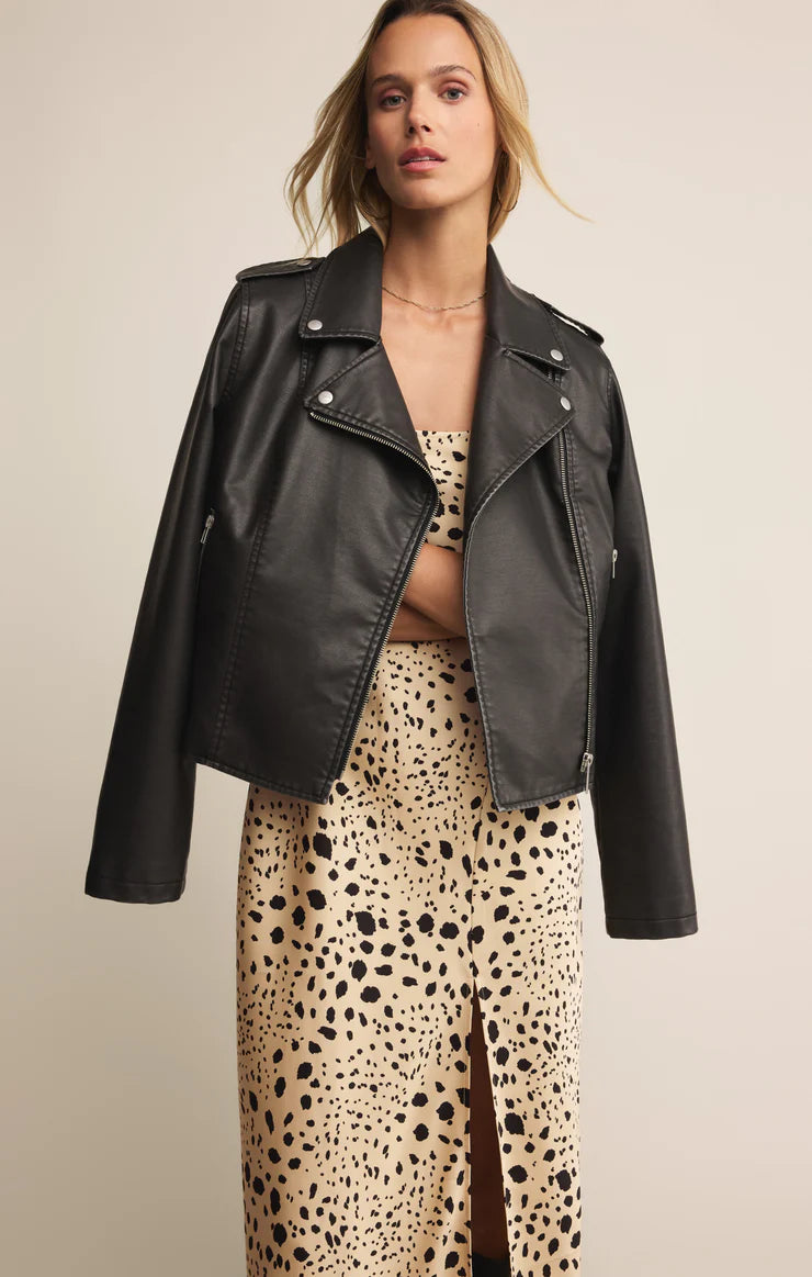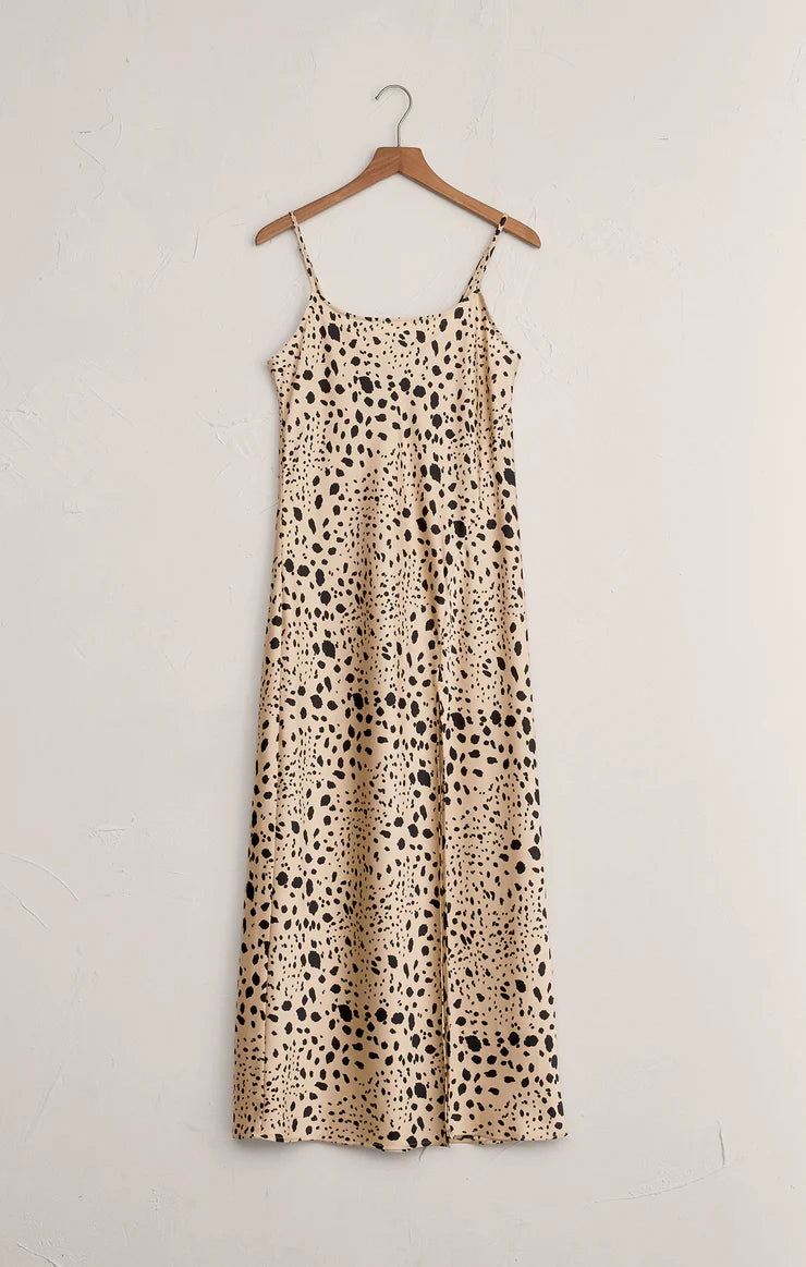 This printed midi dress glides with every step. With adjustable straps and a flirty slit in front, it’s the kind of piece you’ll wear to candlelit dinners and beyond.