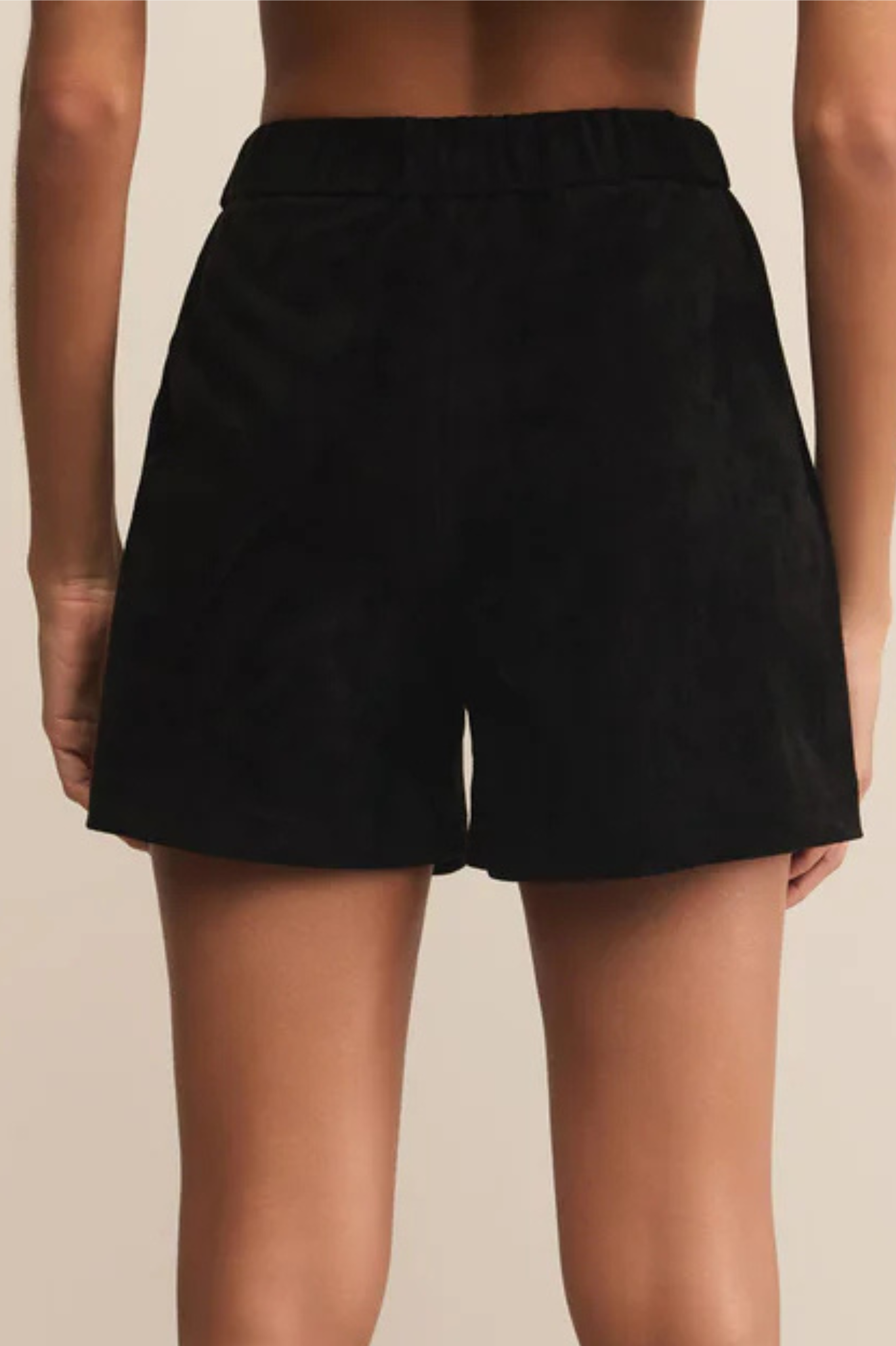 Tailored but totally laid-back. These high-rise faux suede shorts are smooth to the touch with an elastic waistband and pockets for easy styling.