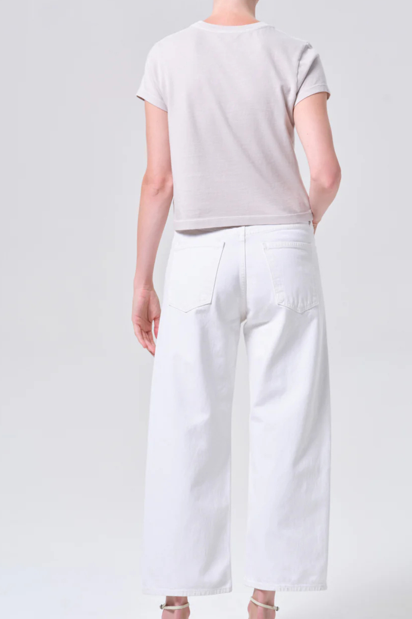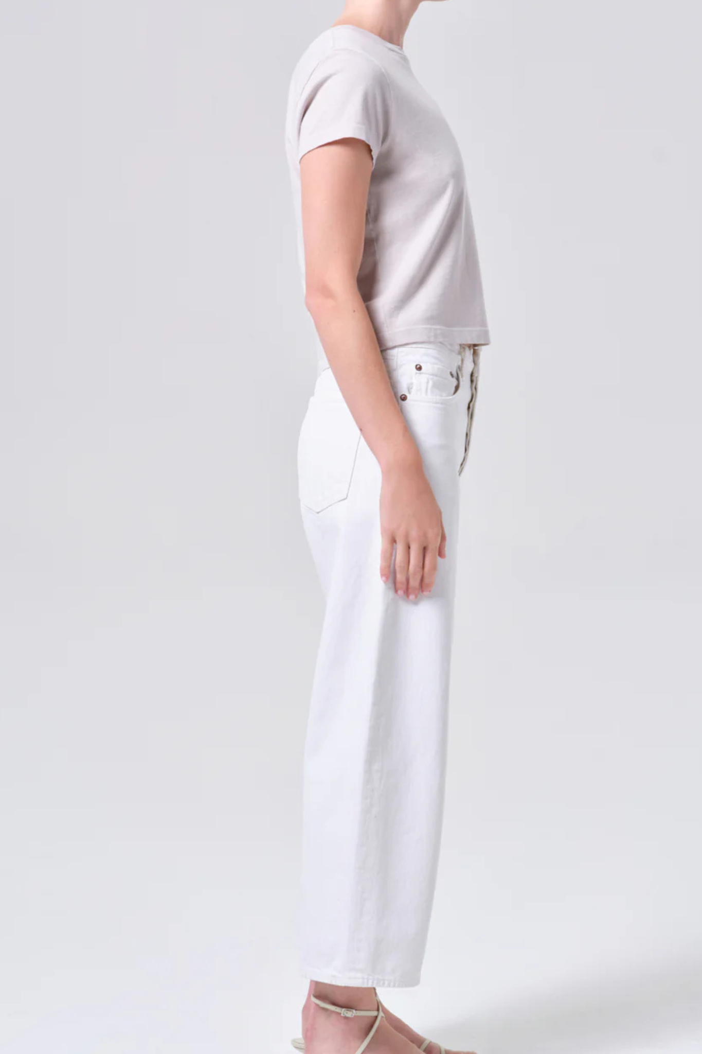 The Arc Jean features a subtle bow-leg silhouette with an easy, relaxed top block—offering a directional shape that feels effortlessly cool. Crafted from non-stretch regenerative cotton in a off-white clean denim pant, this fit is designed for all-day wearability with a soft hand feel. Perfectly paired with boots, the Arc is a go-to for any day and elevated layering.