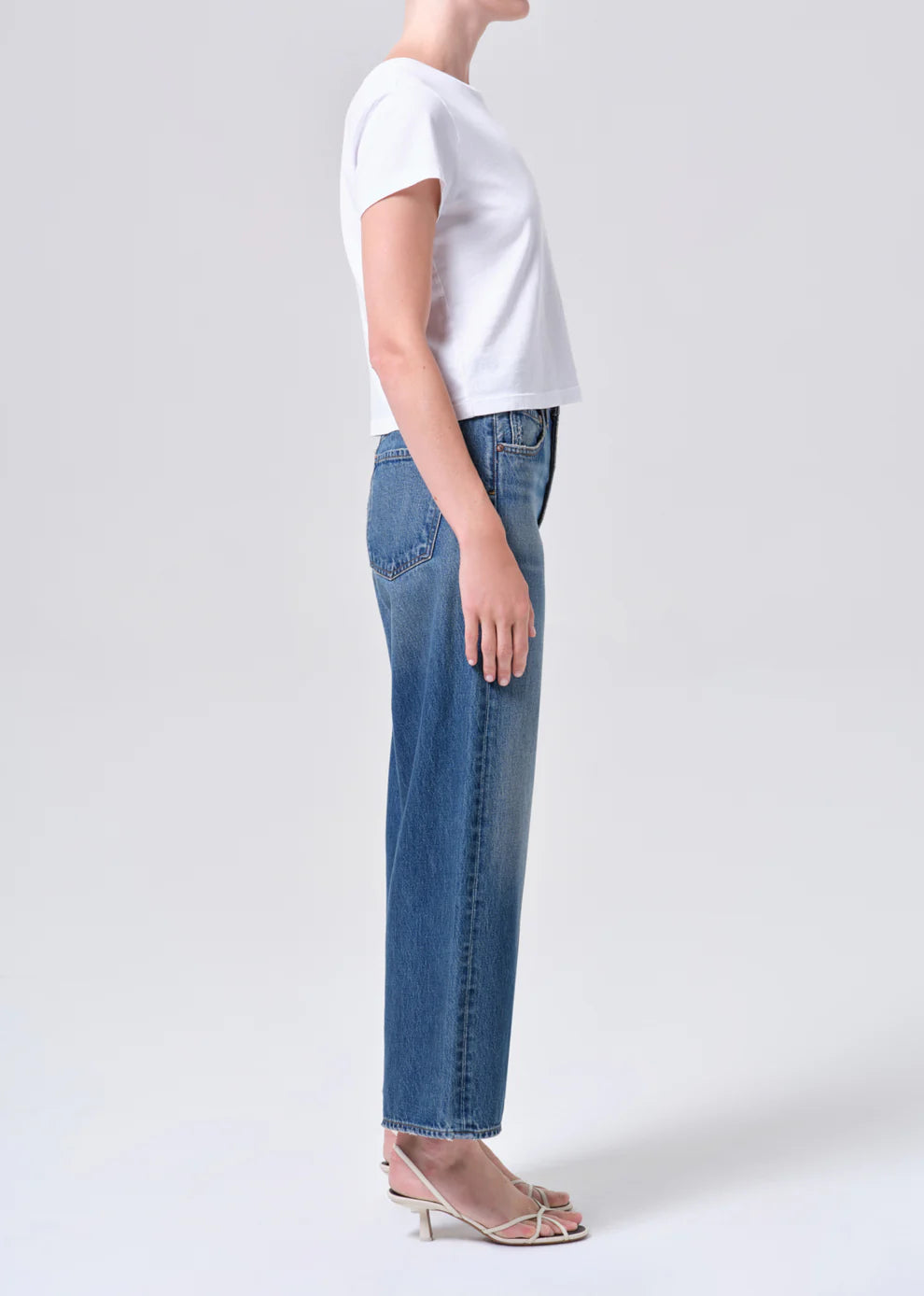 A high-rise wide-leg silhouette, the Ren Jean is designed with a flattering high waist, a relaxed fit through the hips, and a long, easy leg shape that feels both timeless and modern. Finished in a dark washed worn-in indigo, it brings subtle depth and a naturally lived-in look to this structured classic. Crafted from rigid non stretch regenerative cotton denim with a soft hand feel, it delivers all day wearability while maintaining its clean, sculpted form.