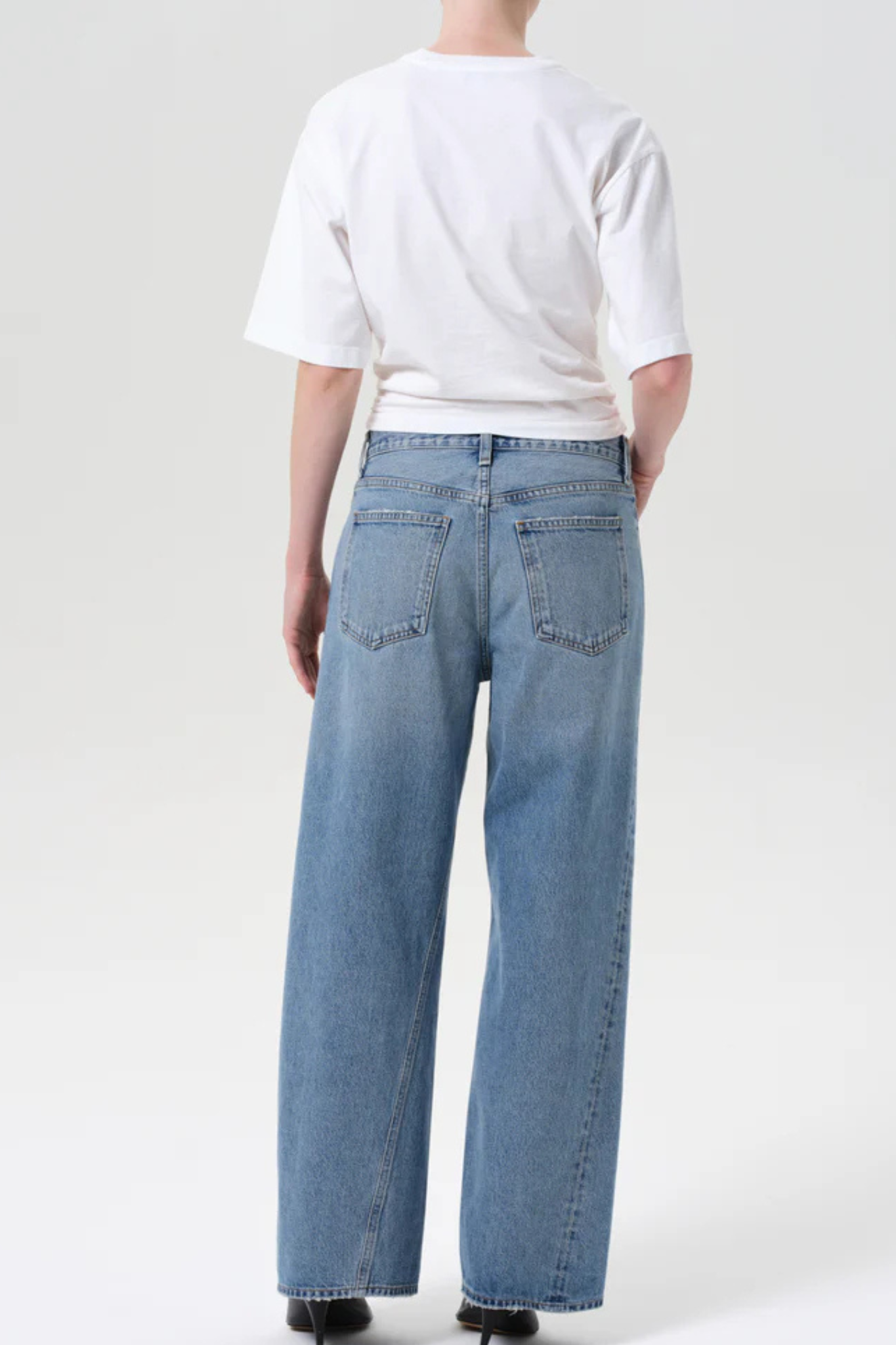 The Twist Low Slung Baggy sits low on the hips with a relaxed, voluminous leg and signature twisted outseam. Crafted from rigid, marbled indigo denim with a soft hand, this pair offers a vintage-inspired feel with directional edge. Style with a tucked-in tee or cropped jacket to highlight the shape.