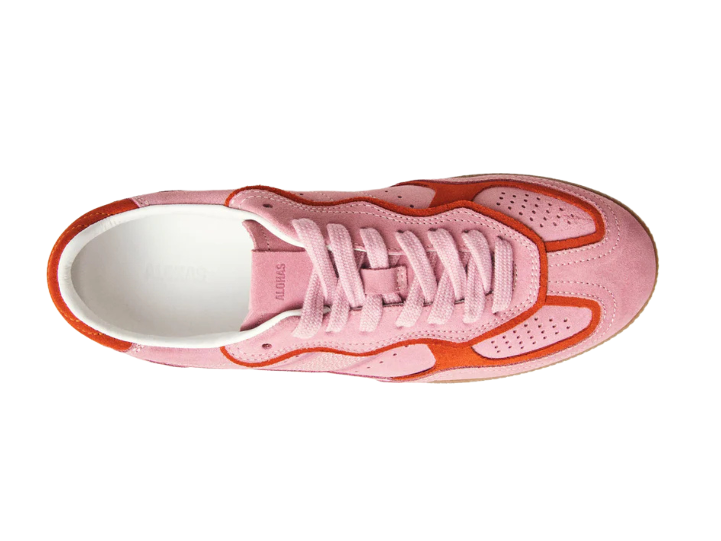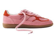 Sea pink suede sneakers with contrast red trims