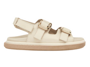 Buckle up! These leather slingback sandals will take your summer style to new fashion destinations. The Harper has molded footbeds and raised rubber soles. The slingback silhouette ensures a comfortable fit, while the gold-tone, statement-making hardware crown the thick straps for a refined finish