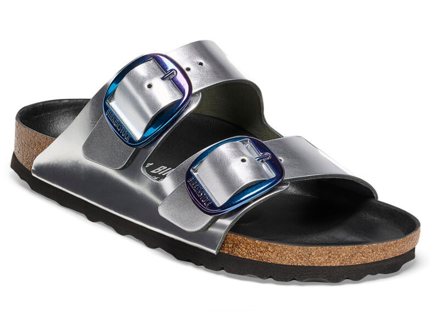 An icon of timeless design and legendary comfort, the Arizona sandal has been defining style since 1973. Metallic leather shines up the classic style, brought together by iridescent big buckles for added shimmer. The style is grounded in our original contoured footbed, designed to shape to you for the ultimate in custom support.