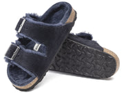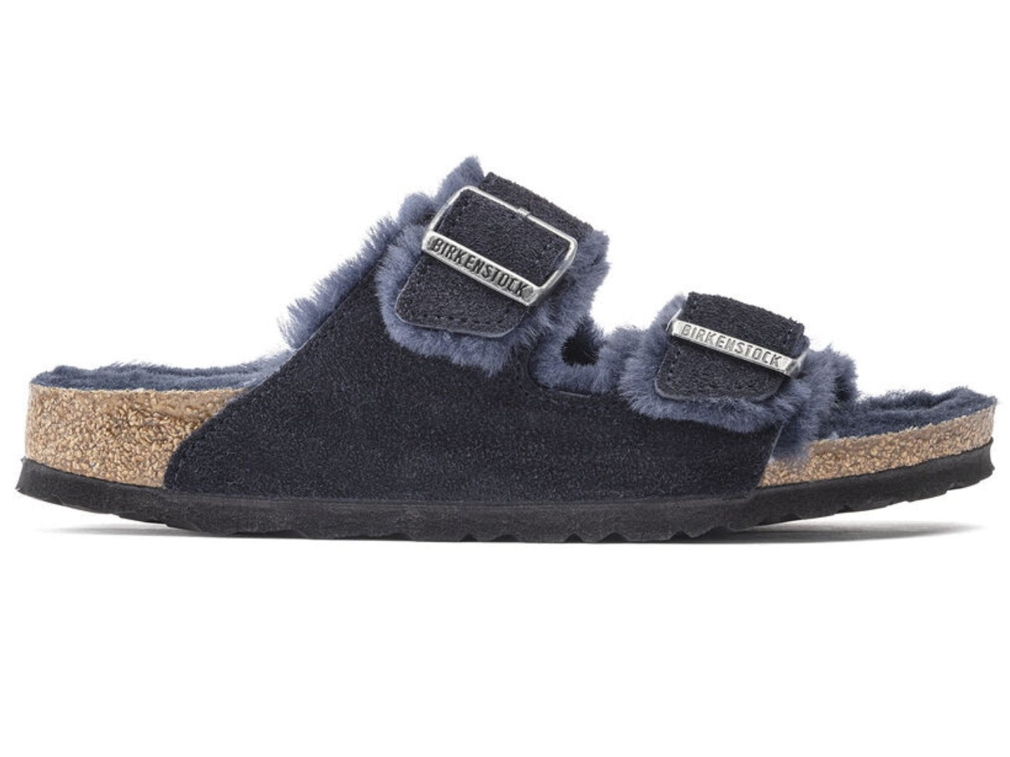 The legendary two-strap design from BIRKENSTOCK - the Arizona. Iconic style with the signature comfort of the BIRKENSTOCK footbed. Featured in genuine high-quality suede – this is an extra cozy version thanks to a soft, bright genuine shearling lining on the anatomically formed cork-latex footbed and straps. These sandals are perfect for chilly, winter evenings.