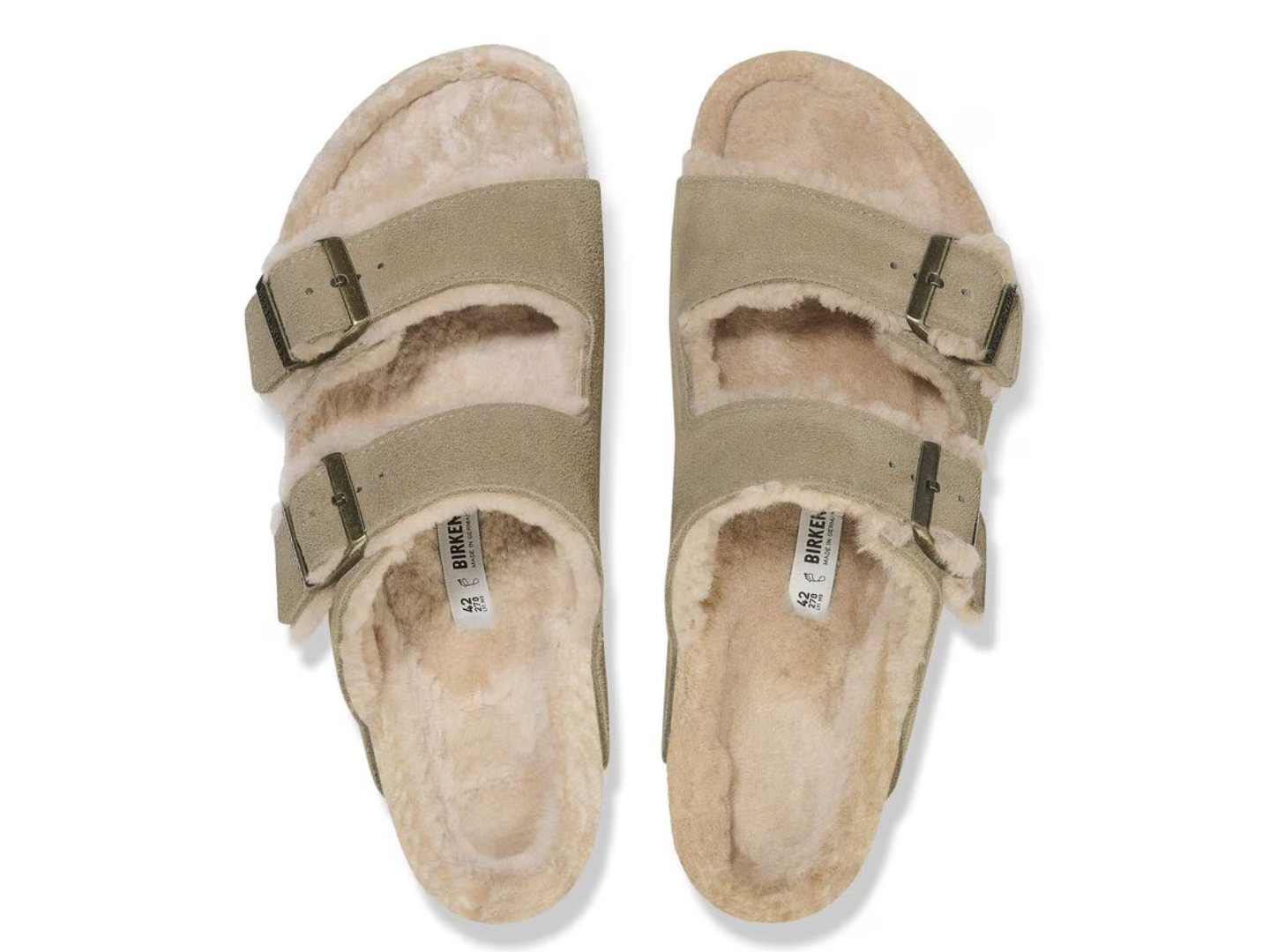 The Arizona sandal, made cozy for the colder months. Classic suede lends a velvety feel that continues on the inside. The style is fully lined in genuine shearling, right down to the original contoured footbed. A soft, supportive landing every time.