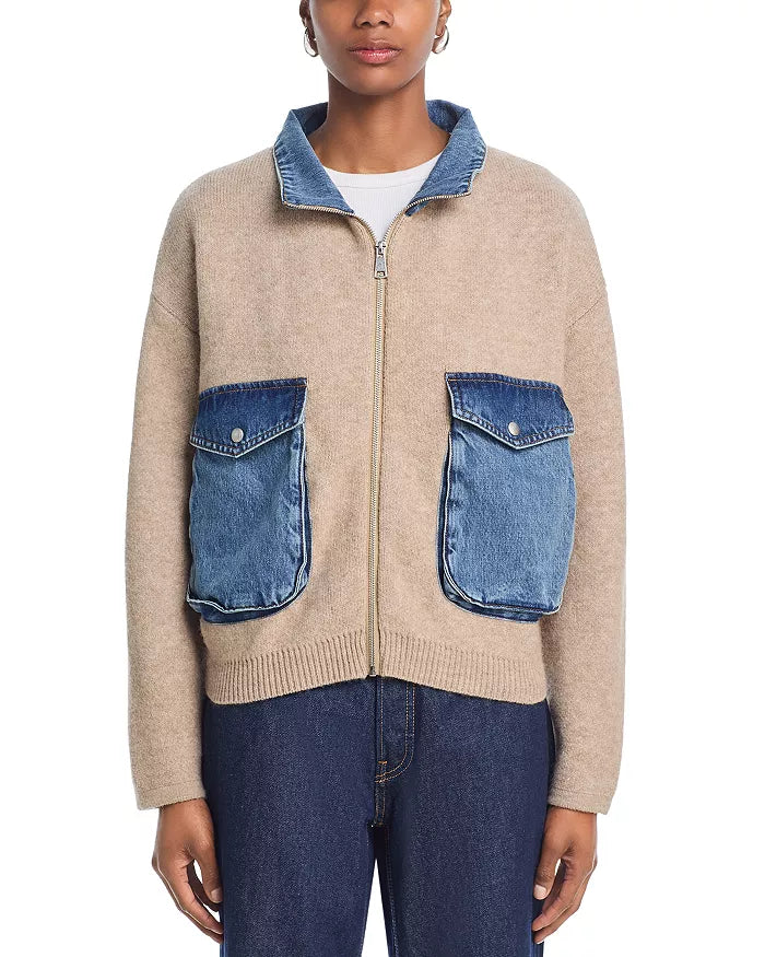 Glow Up Sweater Bomber Jacket in Dark Sand by: Blank NYC