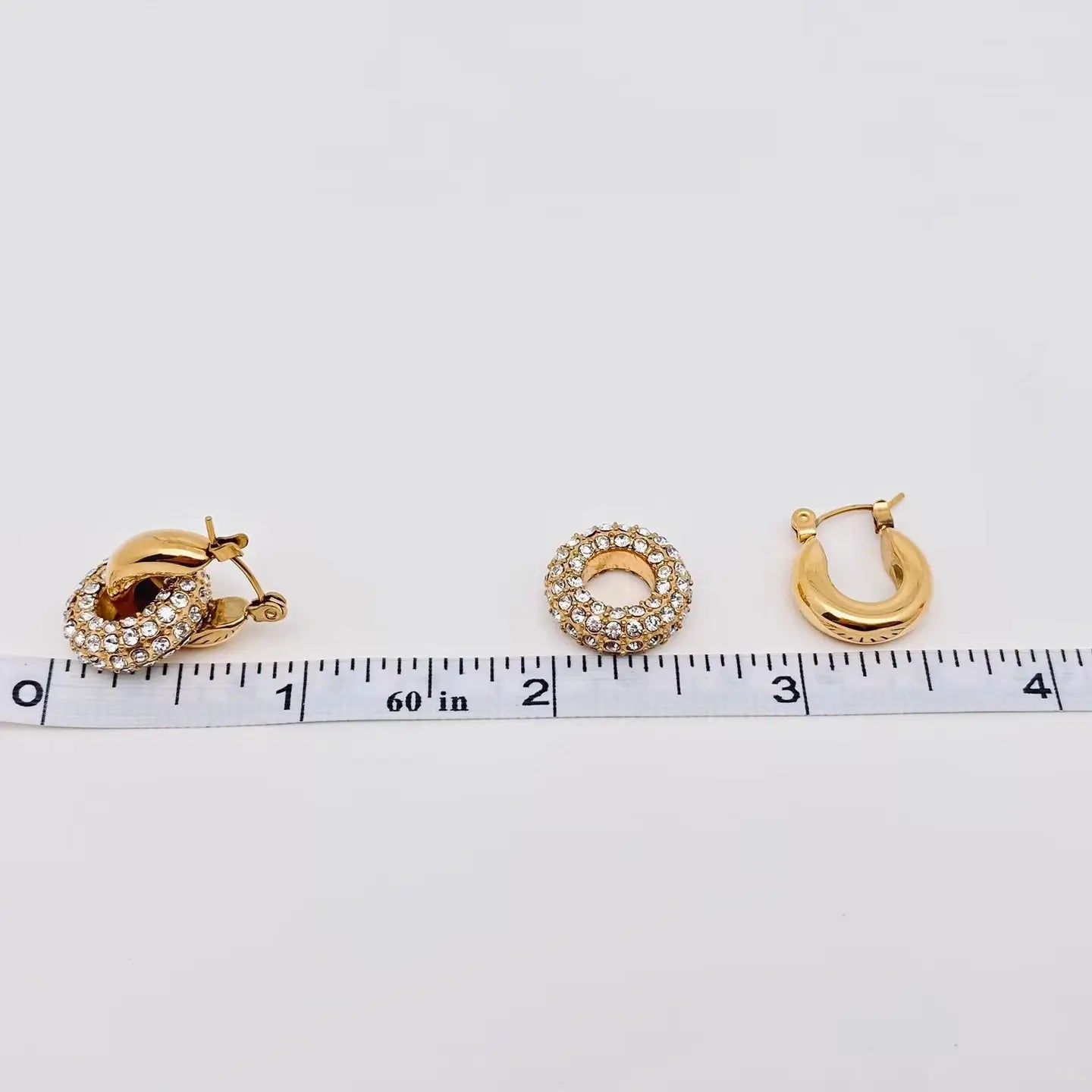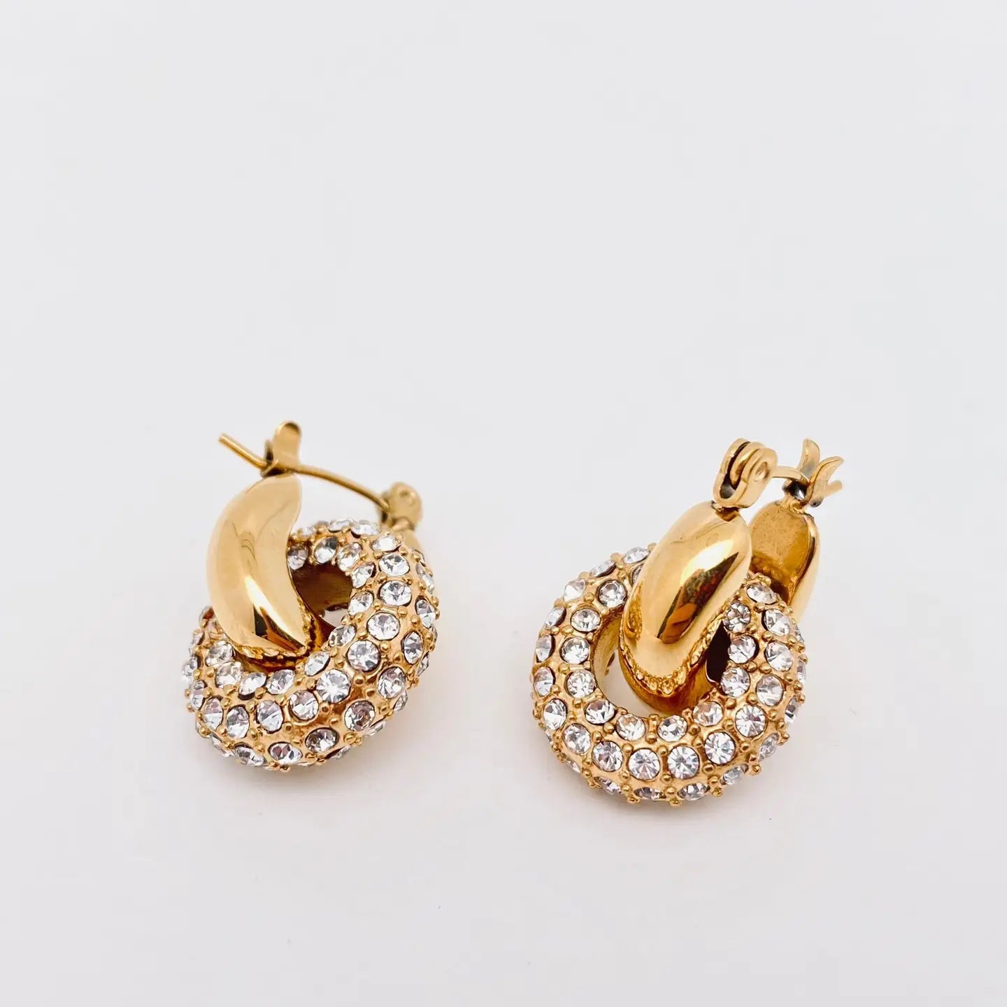 Type: earrings Material : Stainless steel ,Cubic Zirconia,18K gold plated Size : 12.2mm*24.5mm Process: Vacuum electroplating and manual polishing Surface : High Polish ★Made of high quality stainless steel,Lead-free,Harmless to Human Body. ★Perfect jewelry gifts